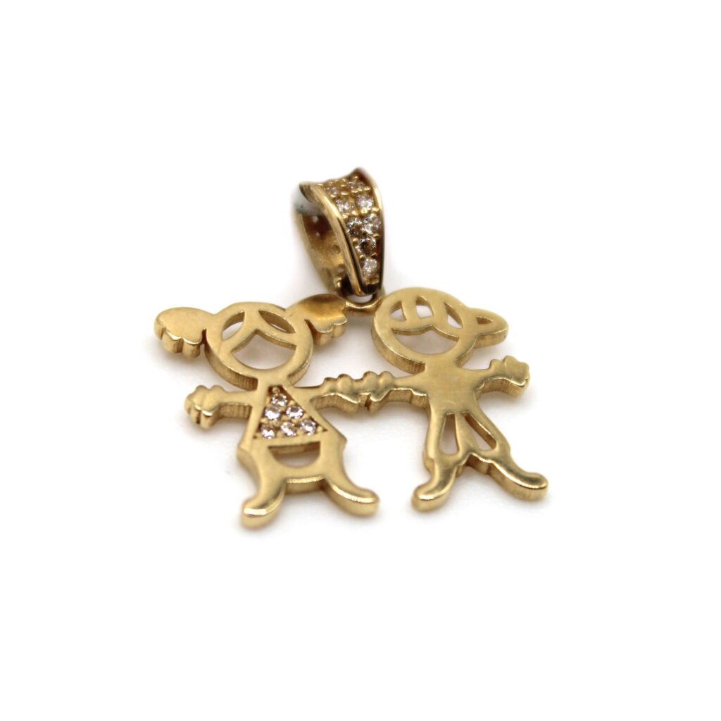 Kids Holding Hands Pendant with Zirconia – 14KT Gold