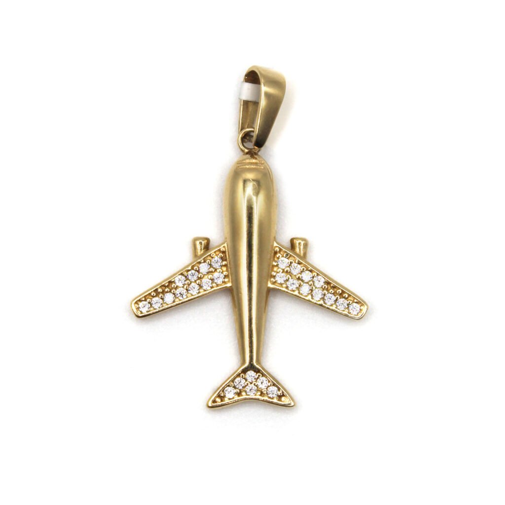 Airplane Pendant with Zirconia – 14KT Gold
