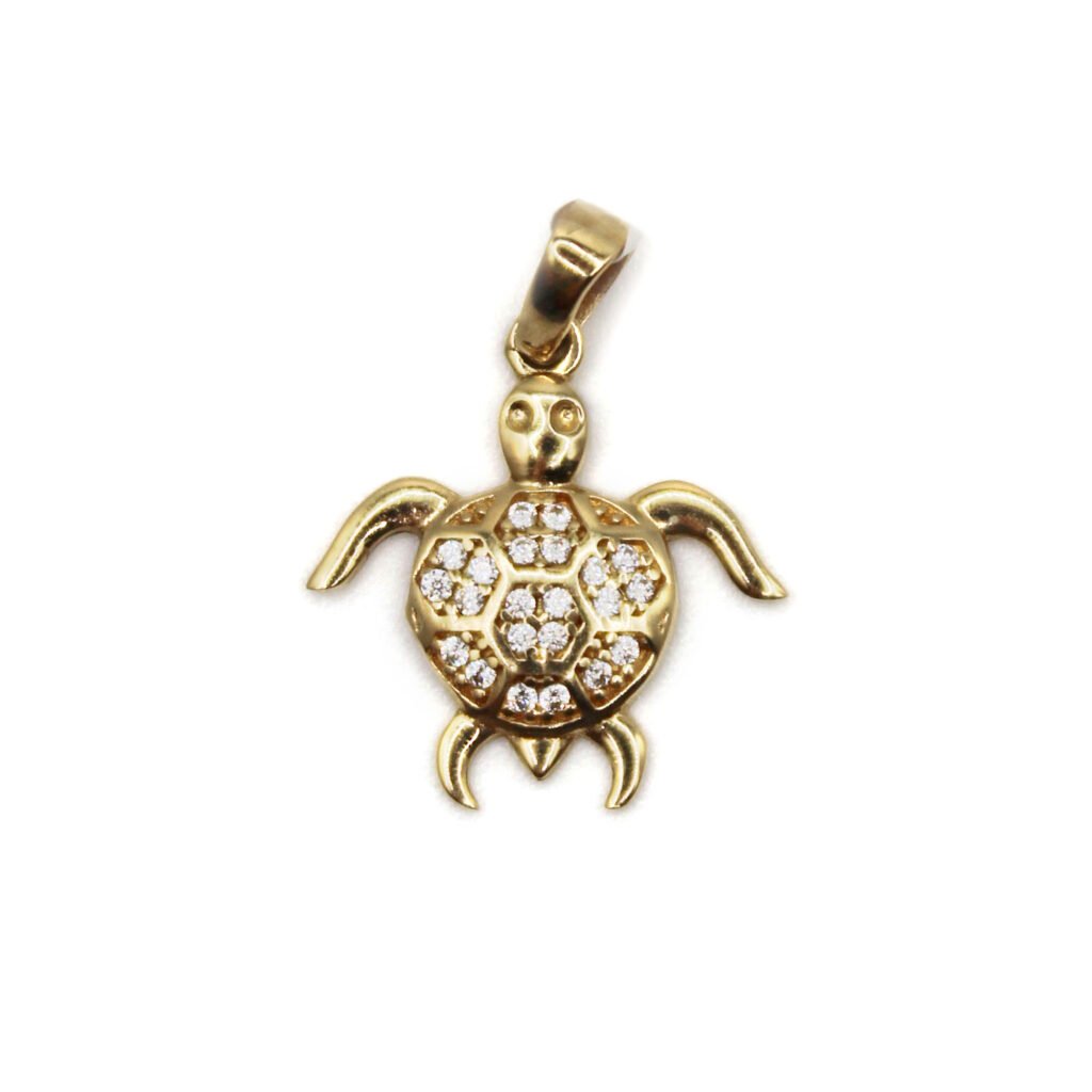 Turtle Pendant with Zirconia – 14KT Gold