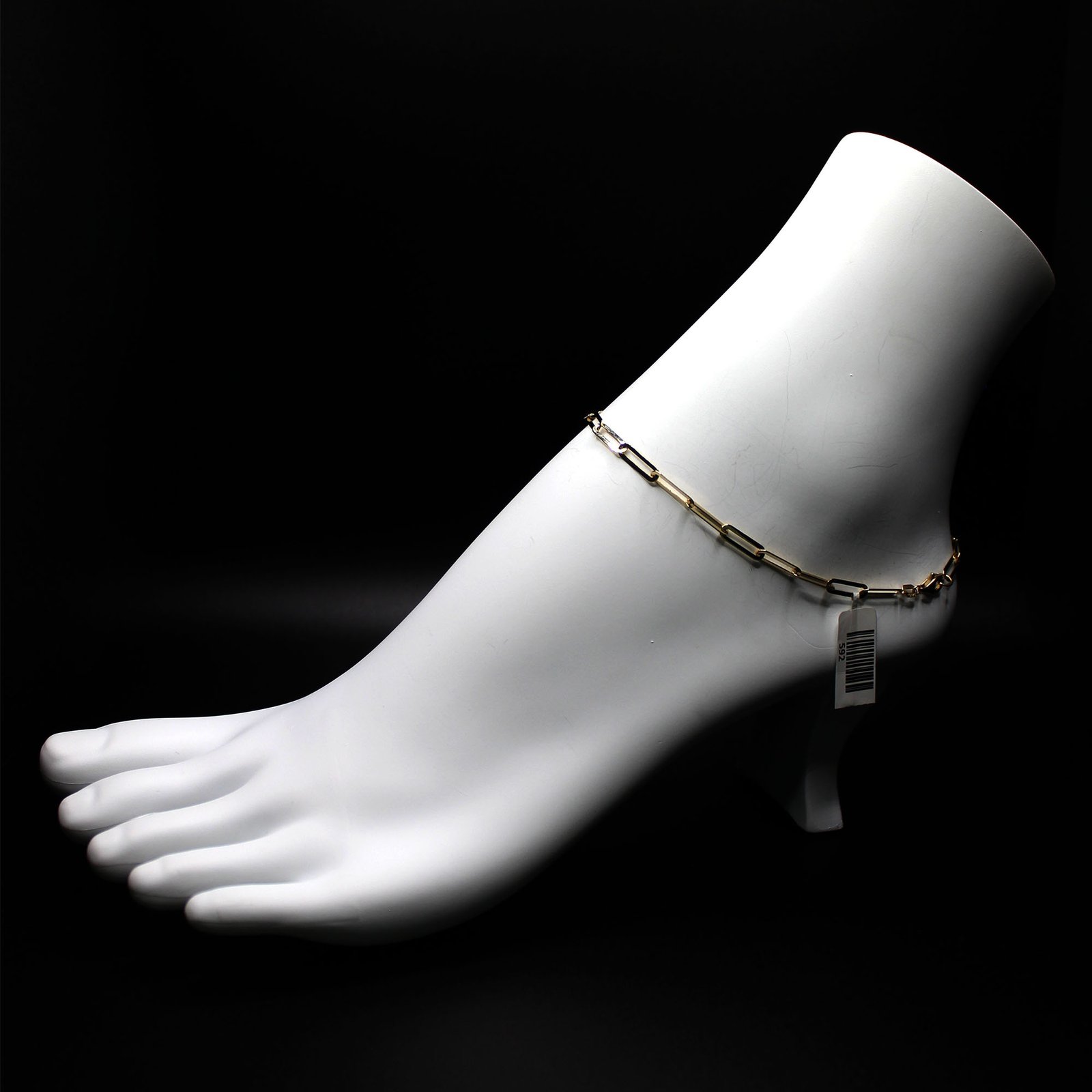 This anklet is crafted in 14KT yellow gold and showcases bold paperclip-style links, combining elegance with contemporary edge. Its lightweight yet sturdy design makes it versatile enough for everyday wear or special occasions. Whether worn alone for a minimal statement or layered with other anklets, it brings a stylish and confident touch to your jewelry collection.