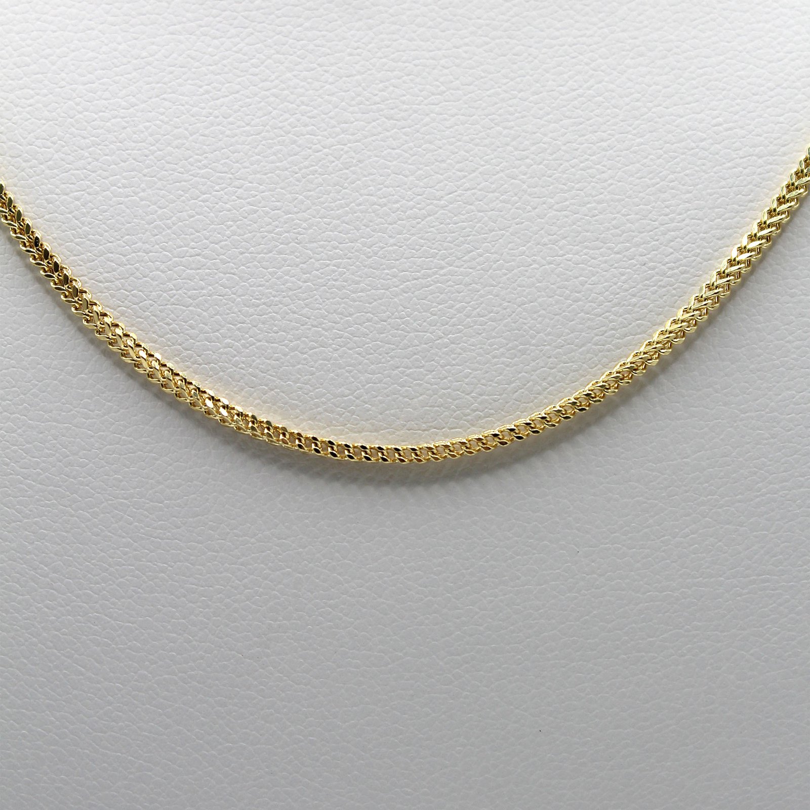 The Franco Chain Necklace is crafted in luminous 10KT gold, showcasing its tightly woven links that create a smooth, flexible design. Elegant yet durable, this timeless piece adds a touch of sophistication to any outfit, whether worn alone or layered with other chains.