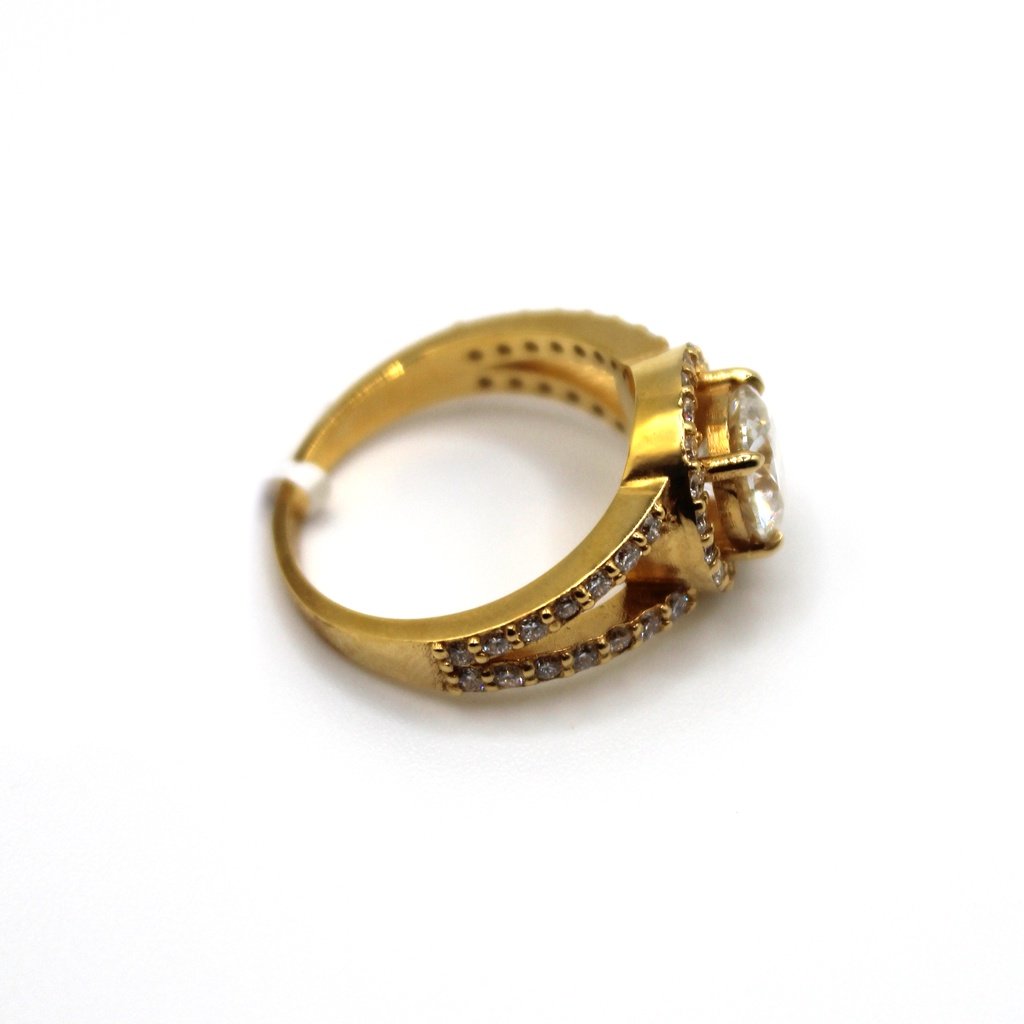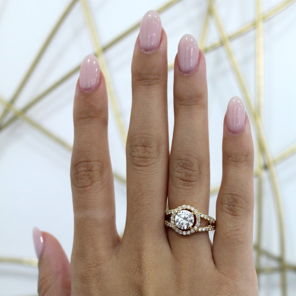 This exquisite women’s ring crafted in 14kt gold features a stunning round-cut solitaire centerpiece framed by a radiant halo of sparkling stones. The split shank design is delicately adorned with shimmering accent stones, adding brilliance from every angle. Perfect for special occasions, engagements, or as a timeless gift, this piece captures luxury and elegance in every detail.