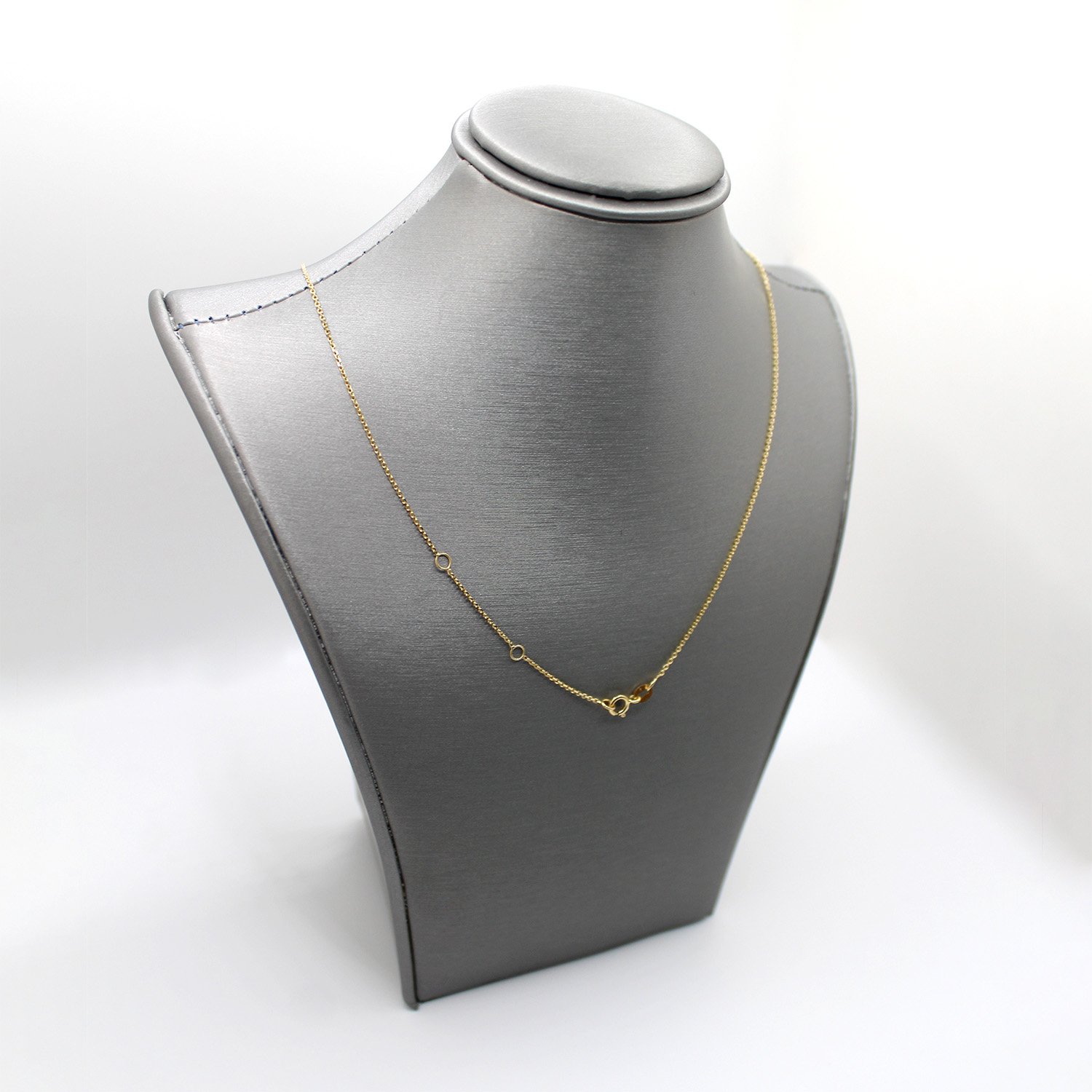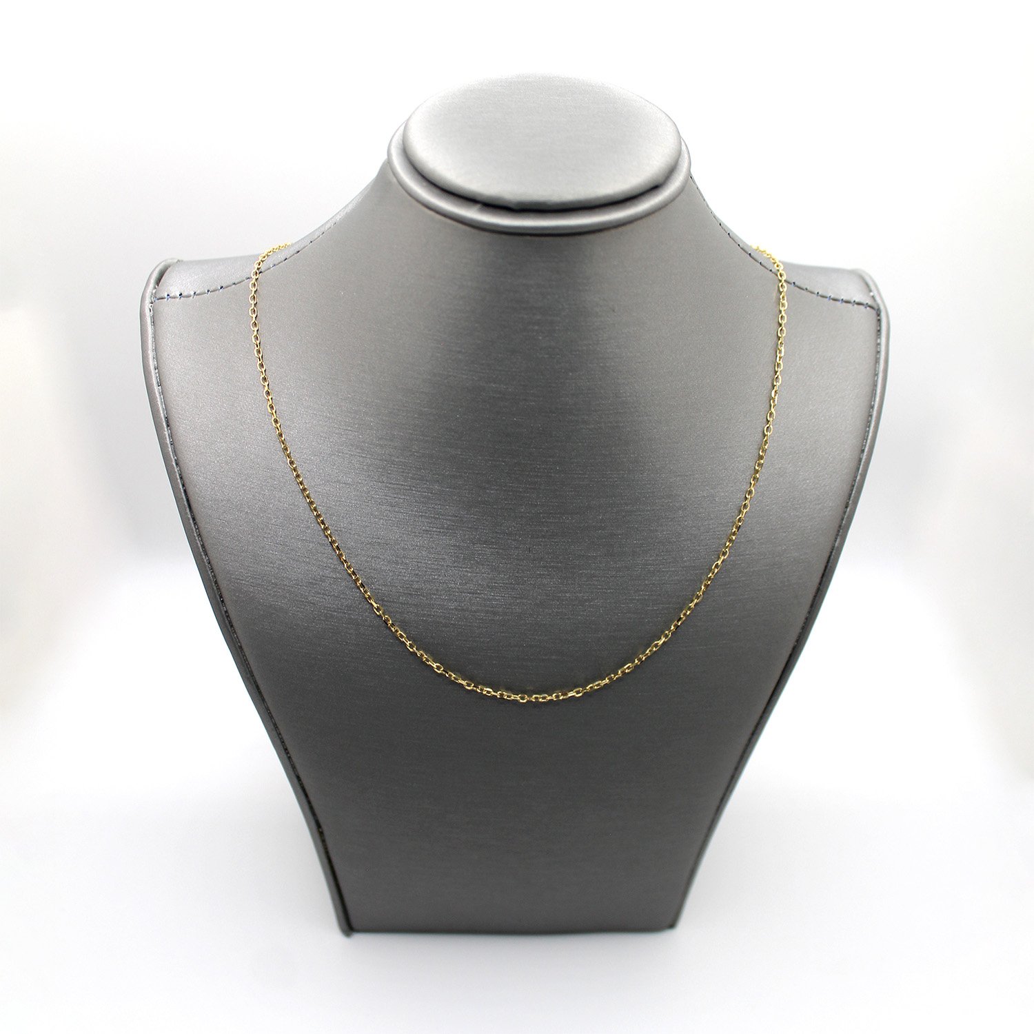 A delicate 14KT yellow gold cable chain featuring an adjustable length of 16 to 18 inches and a bright, high-polish finish.