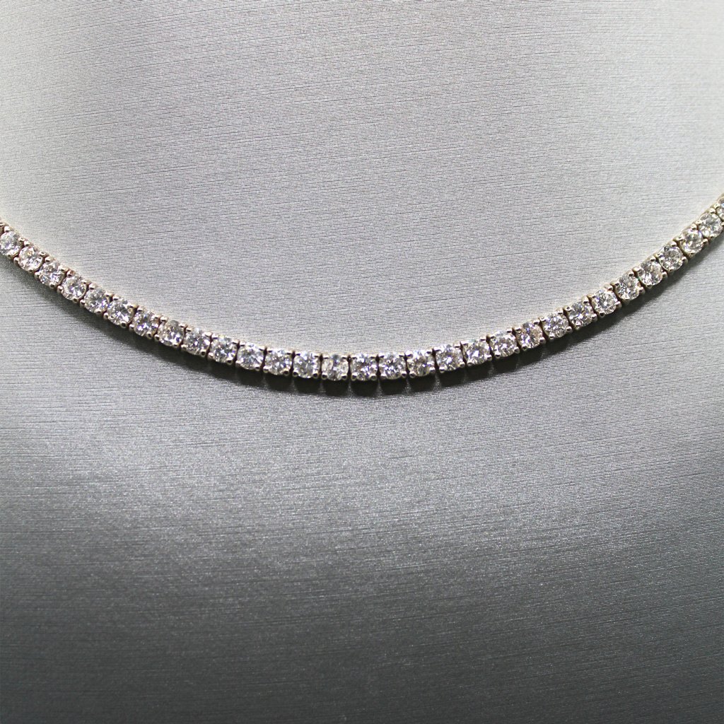 This 14KT gold tennis necklace showcases a continuous line of dazzling high-quality diamonds, perfectly set to capture the light with every movement. A classic and luxurious piece, it’s ideal for special occasions or elevating your everyday style. With its refined craftsmanship and radiant sparkle, this necklace is a staple in fine jewelry collections and a symbol of sophistication.