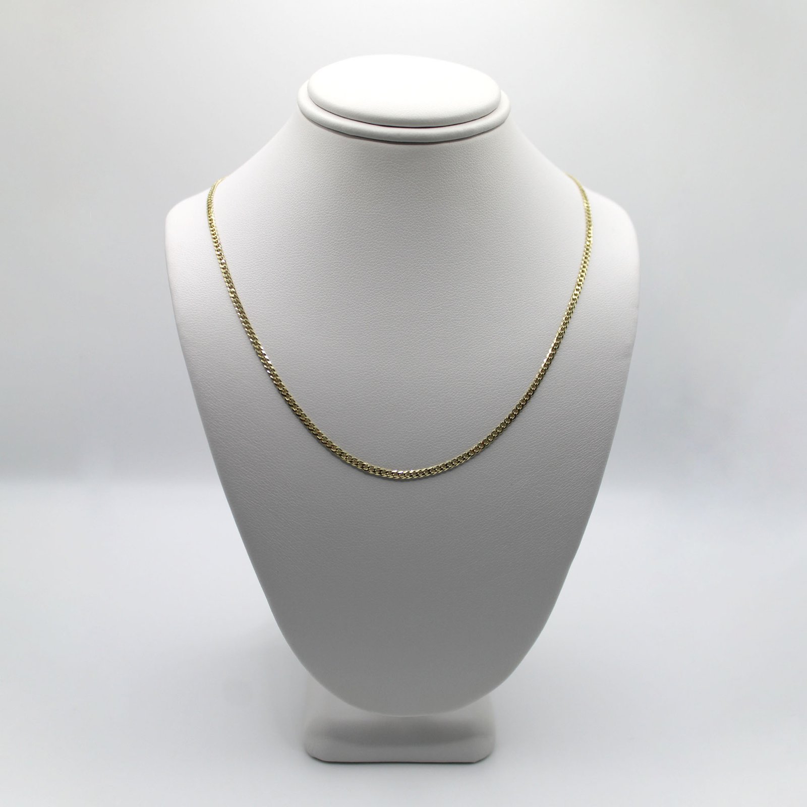 A classic 14KT gold chain necklace featuring fine, flat links with the signature Corte de Brillo finish for subtle radiance and shine.
