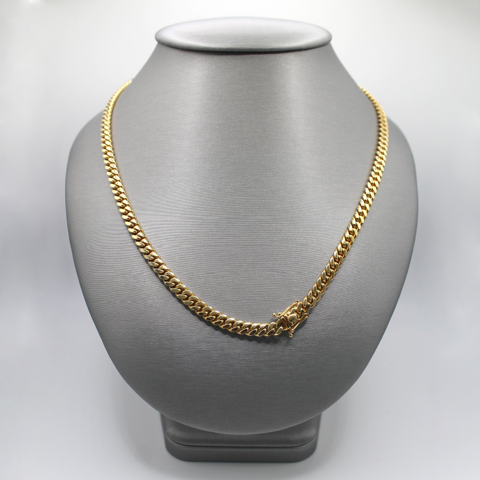 This 10KT gold Cuban link necklace is a timeless statement piece, crafted with precision to showcase its bold interlocking links. The polished finish enhances the radiant shine of the gold, while the secure box clasp ensures both comfort and durability. Designed as a unisex accessory, it brings versatile style that works effortlessly for everyday wear or special occasions. A staple for any jewelry collection, this Cuban chain can be worn solo for a sleek look or paired with a pendant for added personalization.