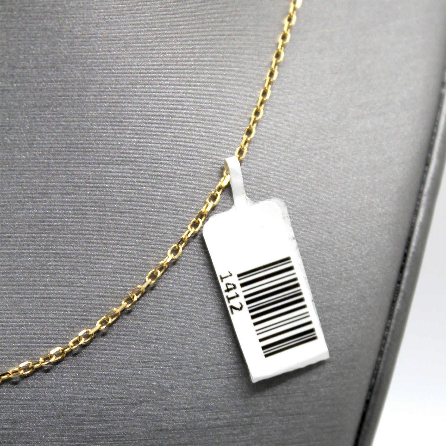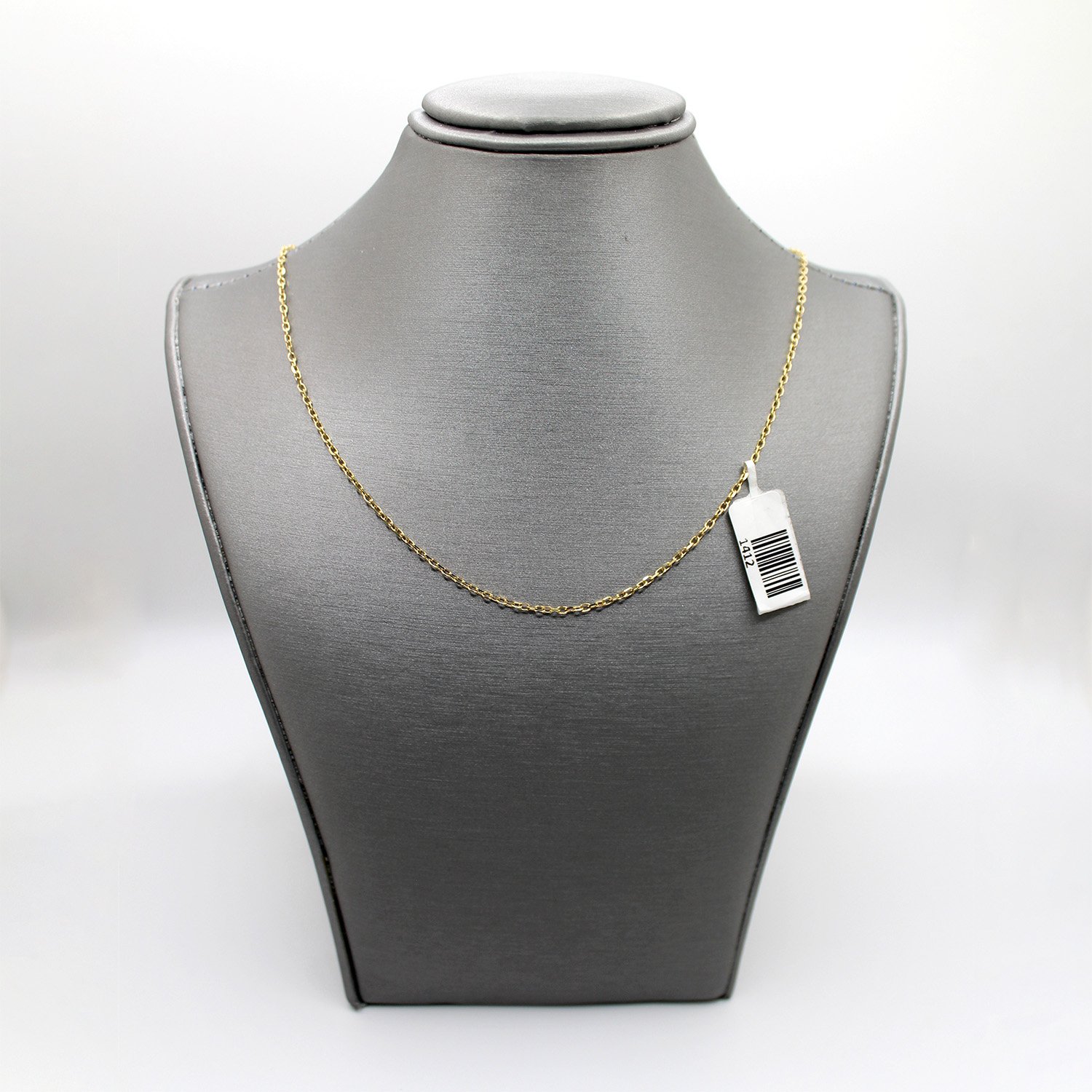 A delicate 14KT yellow gold cable chain with an adjustable length of 16 to 18 inches and a bright, high-polish finish.