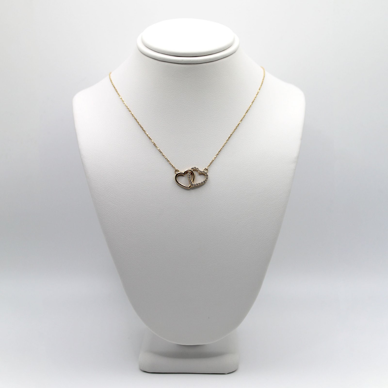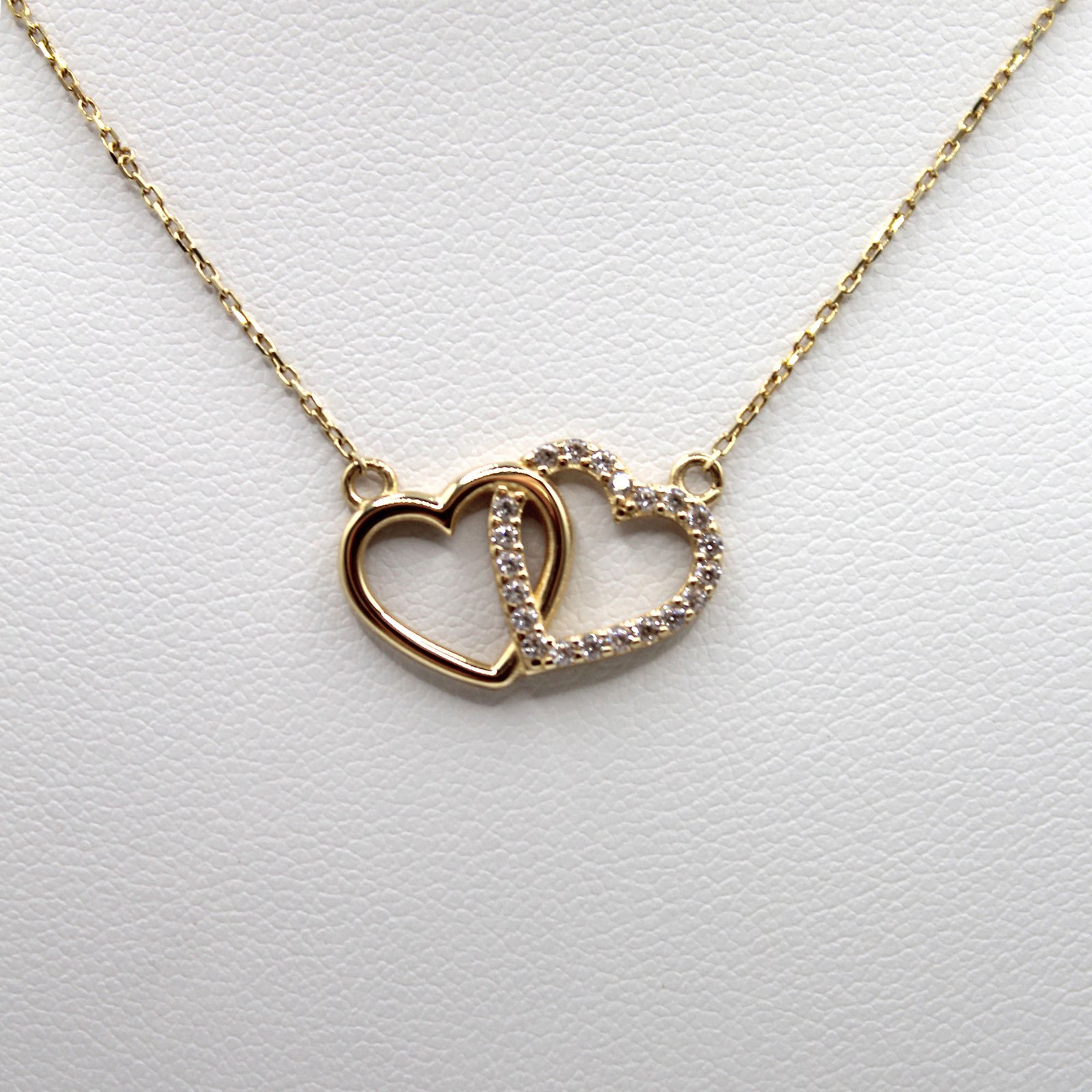The Entwined Hearts – 14KT Necklace is a beautiful expression of love and unity. Crafted in radiant 14KT gold, this necklace features two interlocking heart charms, one polished smooth and the other accented with shimmering zirconia for a brilliant contrast. Perfect for everyday wear or as a meaningful gift, this piece blends elegance and sentiment in a timeless design.
