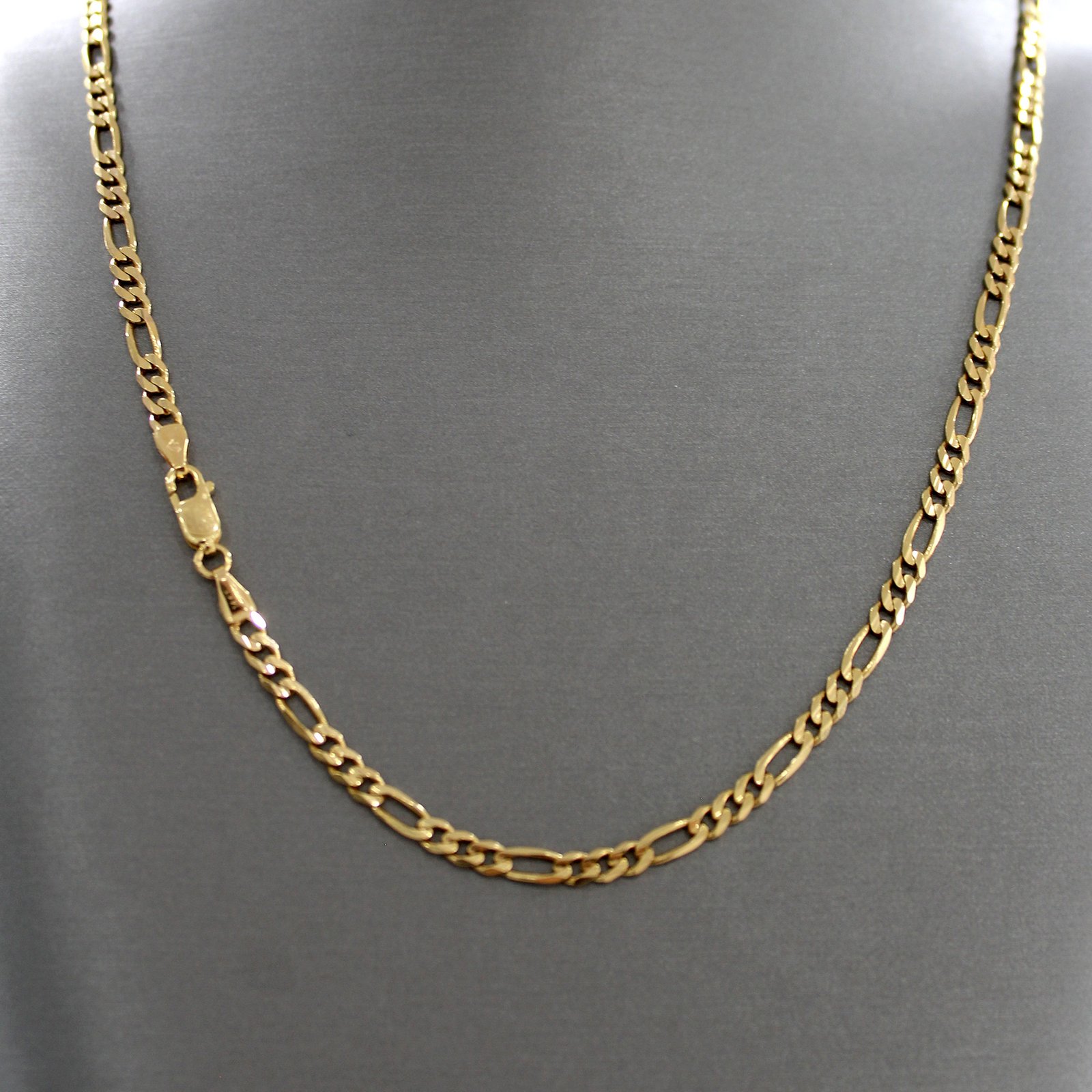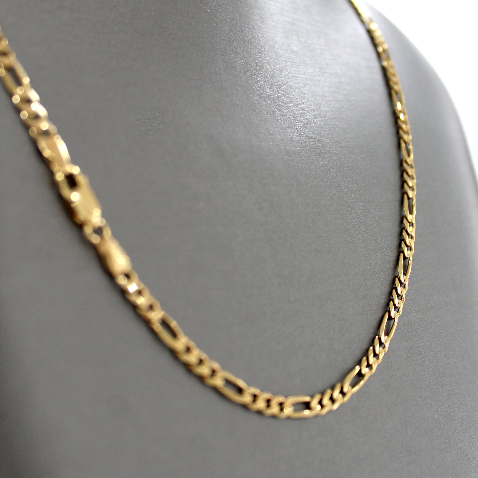 Classic 14KT gold Figaro chain with alternating link pattern, a versatile unisex piece that balances elegance and strength