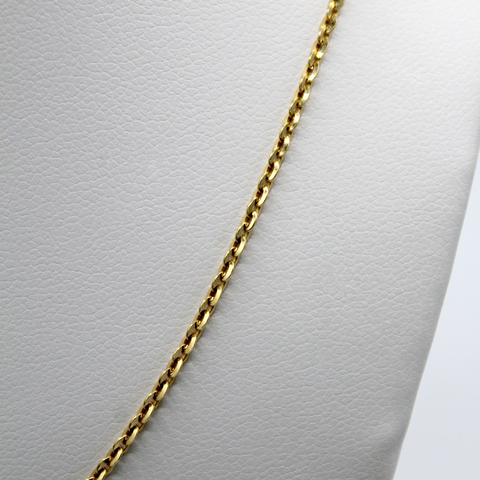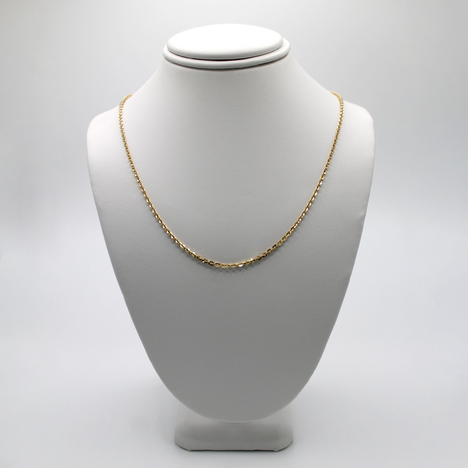 Crafted in radiant 14KT yellow gold, this women’s necklace is an essential piece for any jewelry collection. It features a finely detailed link chain (appears to be a variation of a mariner or cable chain) where the links are subtly faceted or diamond-cut to catch the light with every movement. This necklace is lightweight and delicate enough for comfortable everyday wear, yet its inherent sparkle makes it eye-catching. It is perfect for wearing alone as a minimalist statement or for brilliantly showcasing your favorite pendants and layering with other necklaces.
