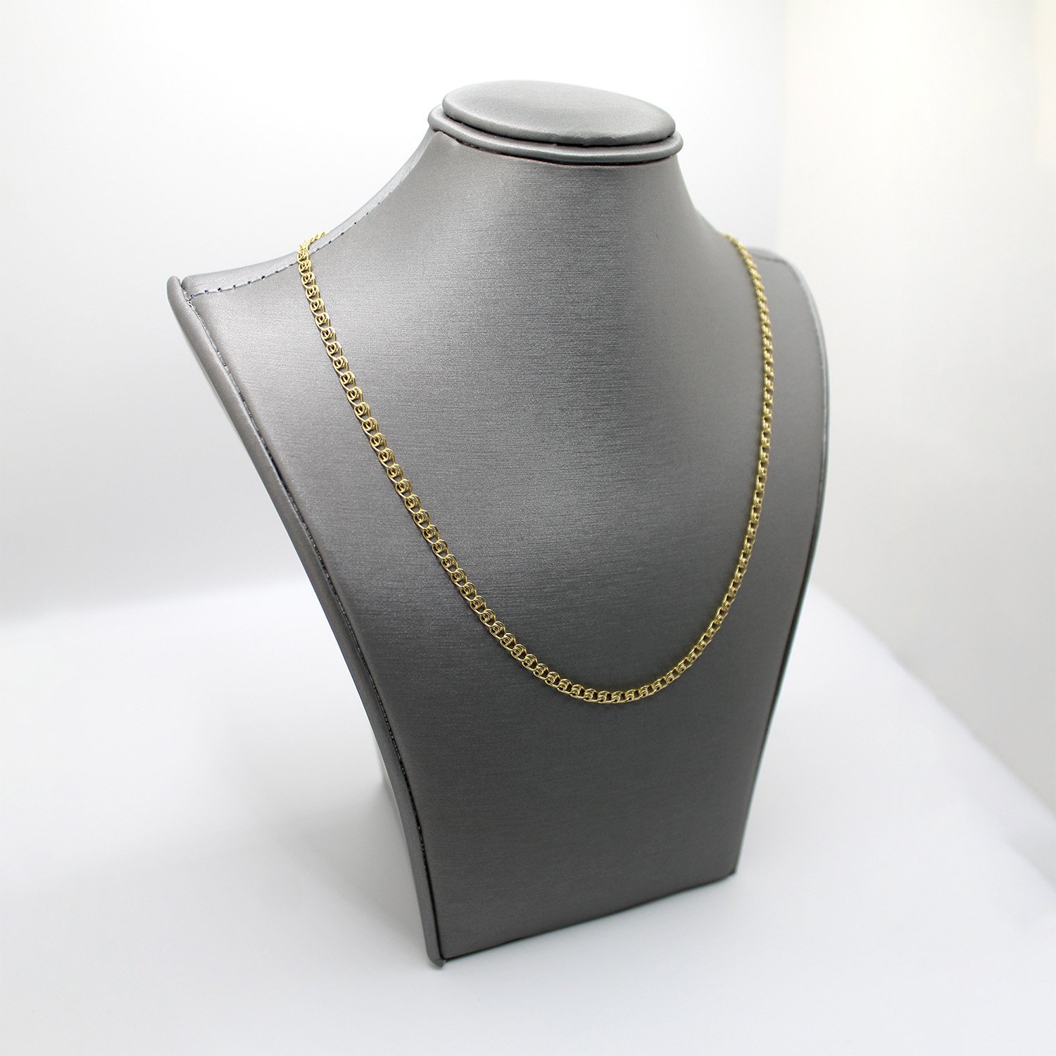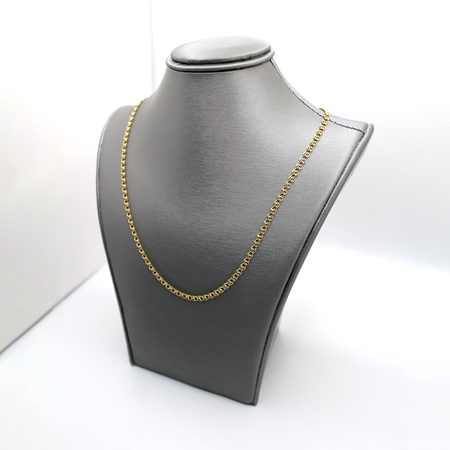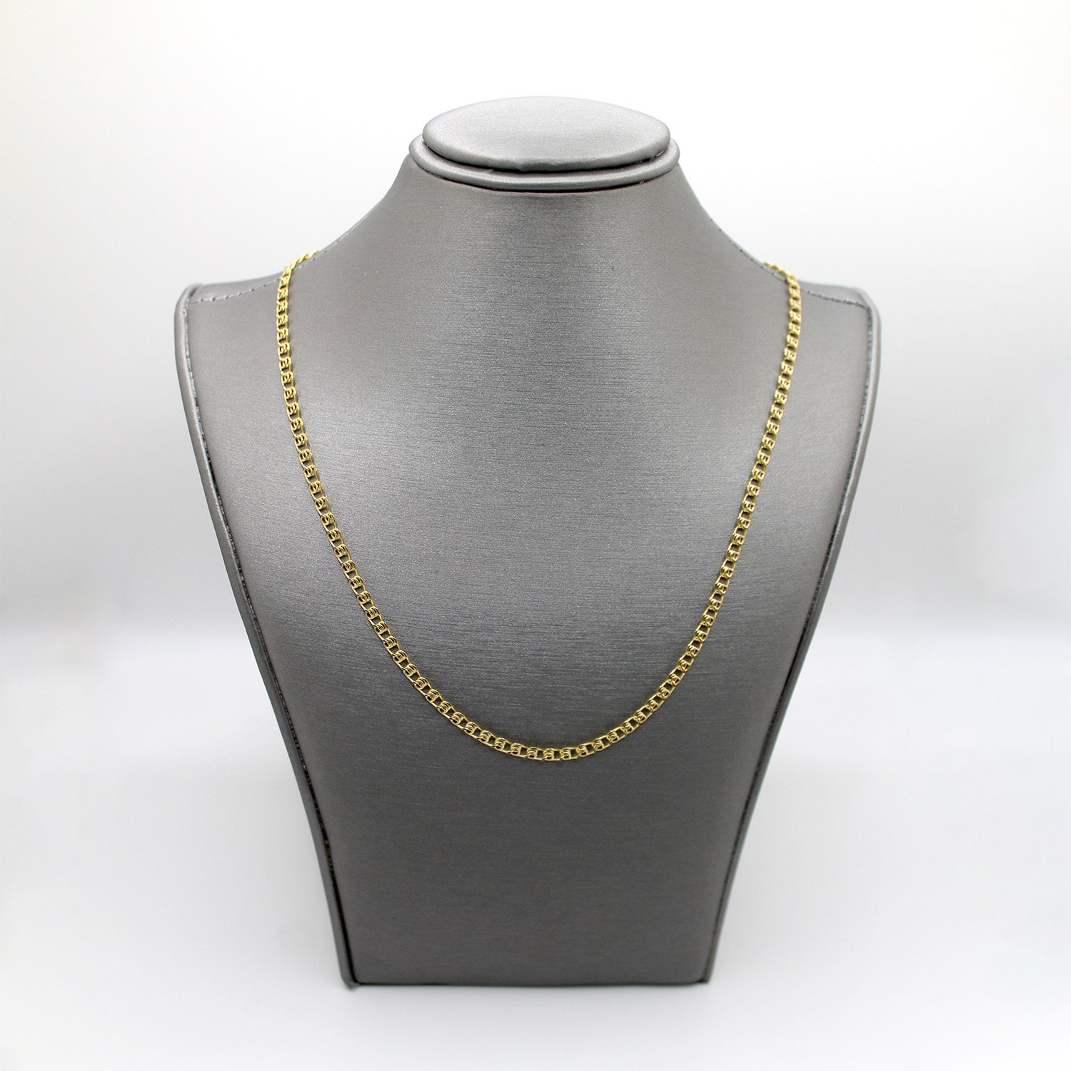 A classic 14KT yellow gold chain necklace featuring flat, rectangular links with a bright, polished finish.