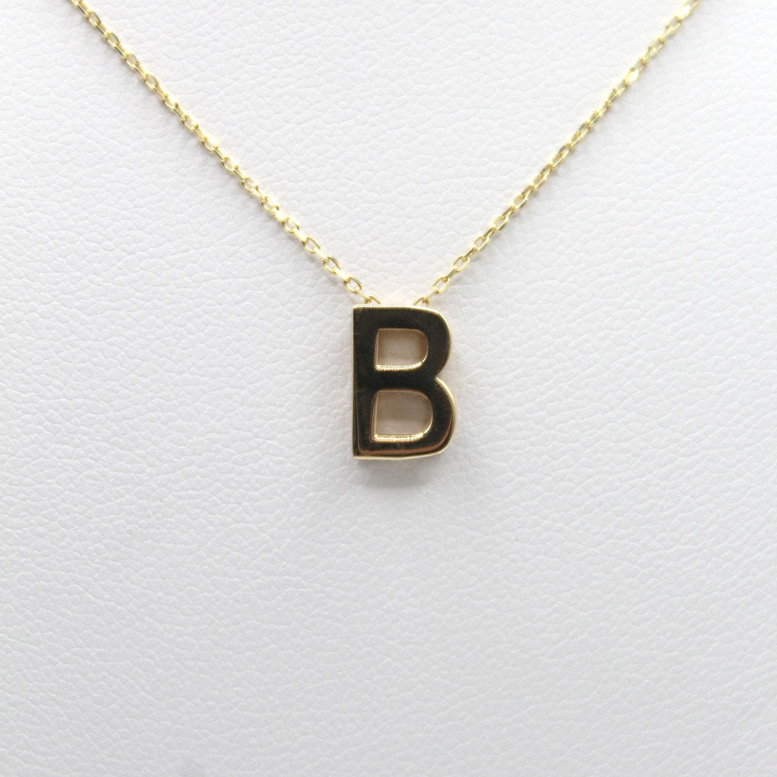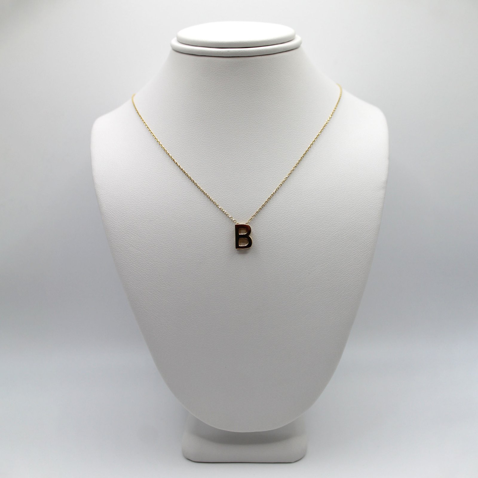 A radiant 14KT gold necklace with a polished “B” initial pendant, offering timeless personalization.