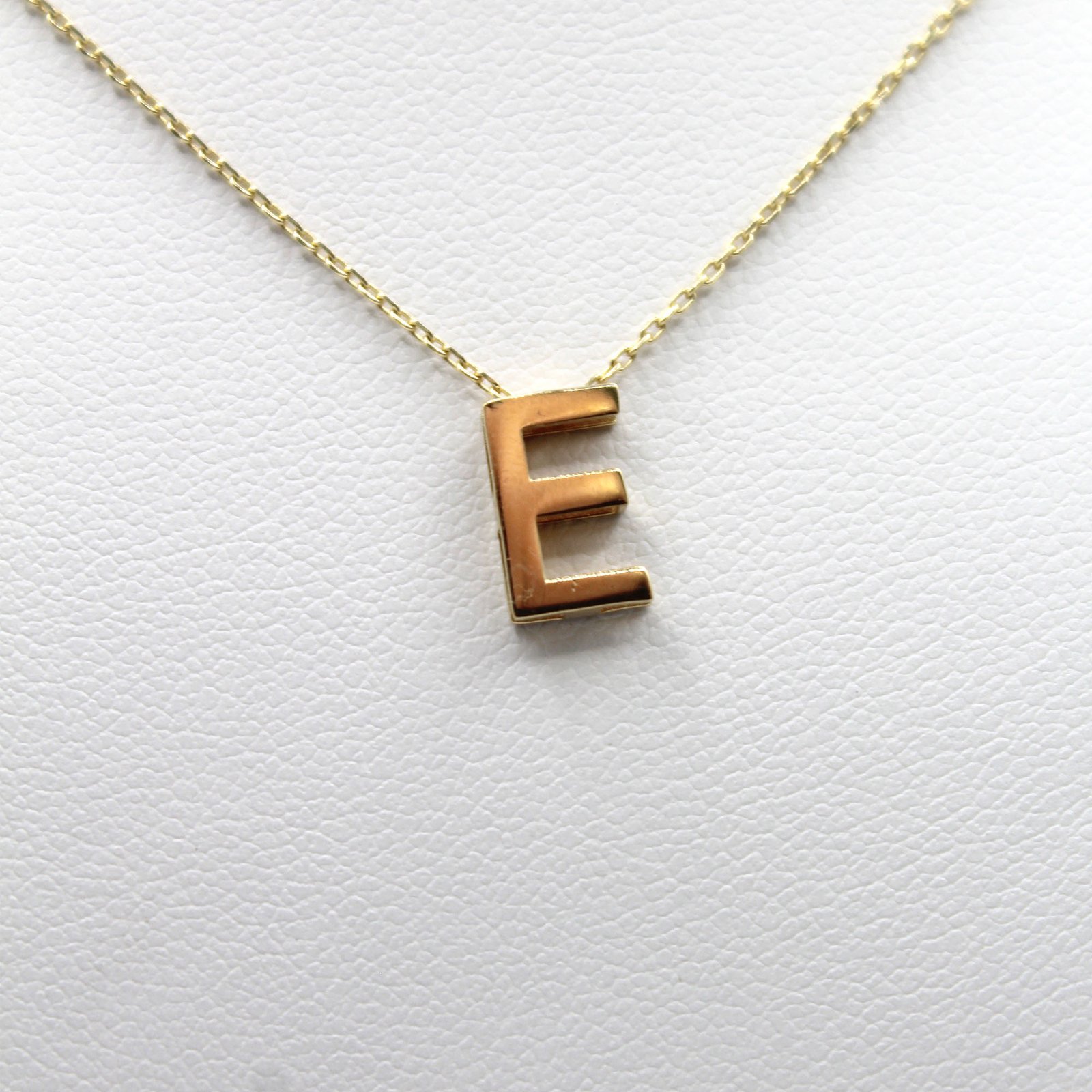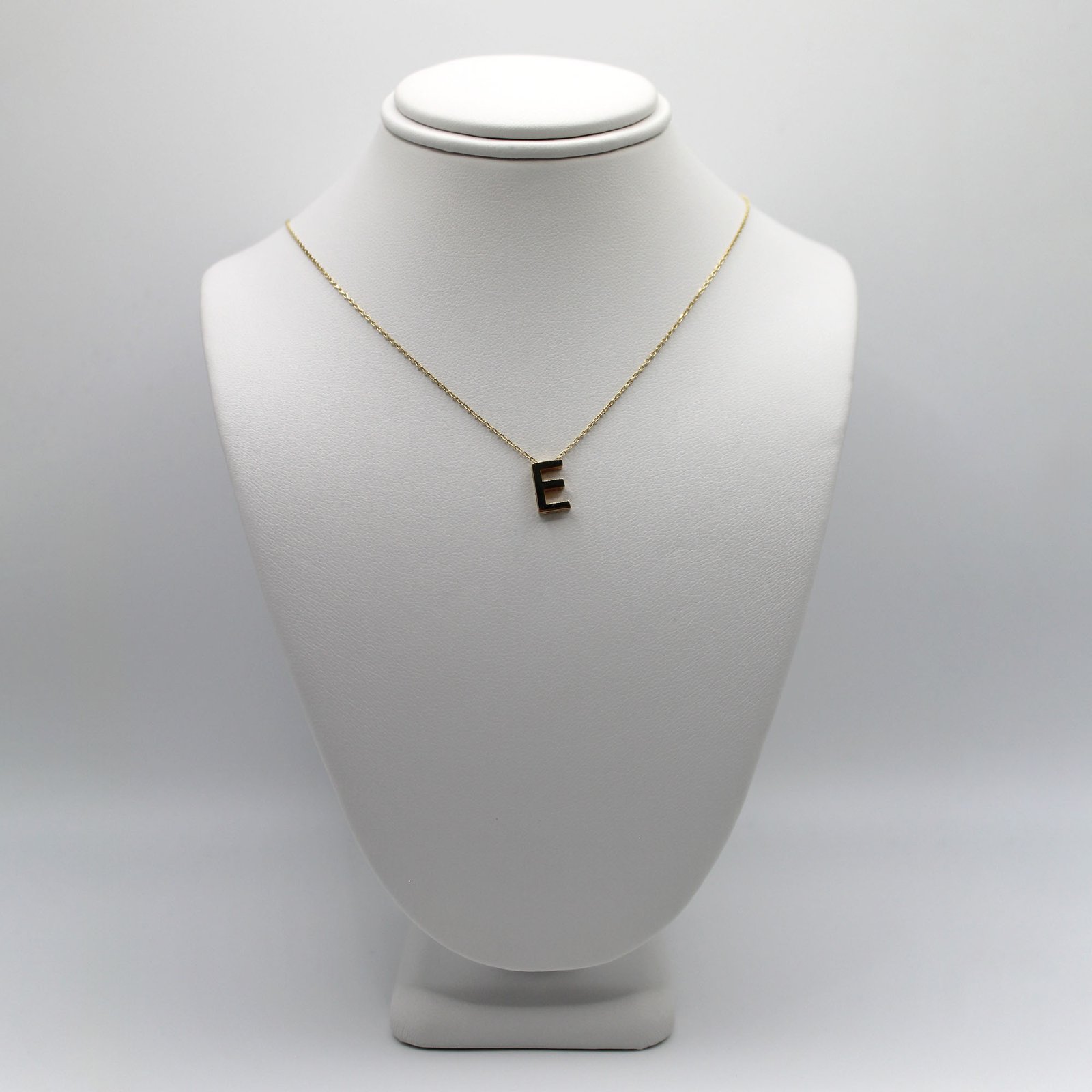 A radiant 14KT gold necklace with a polished “E” initial pendant, offering timeless personalization.