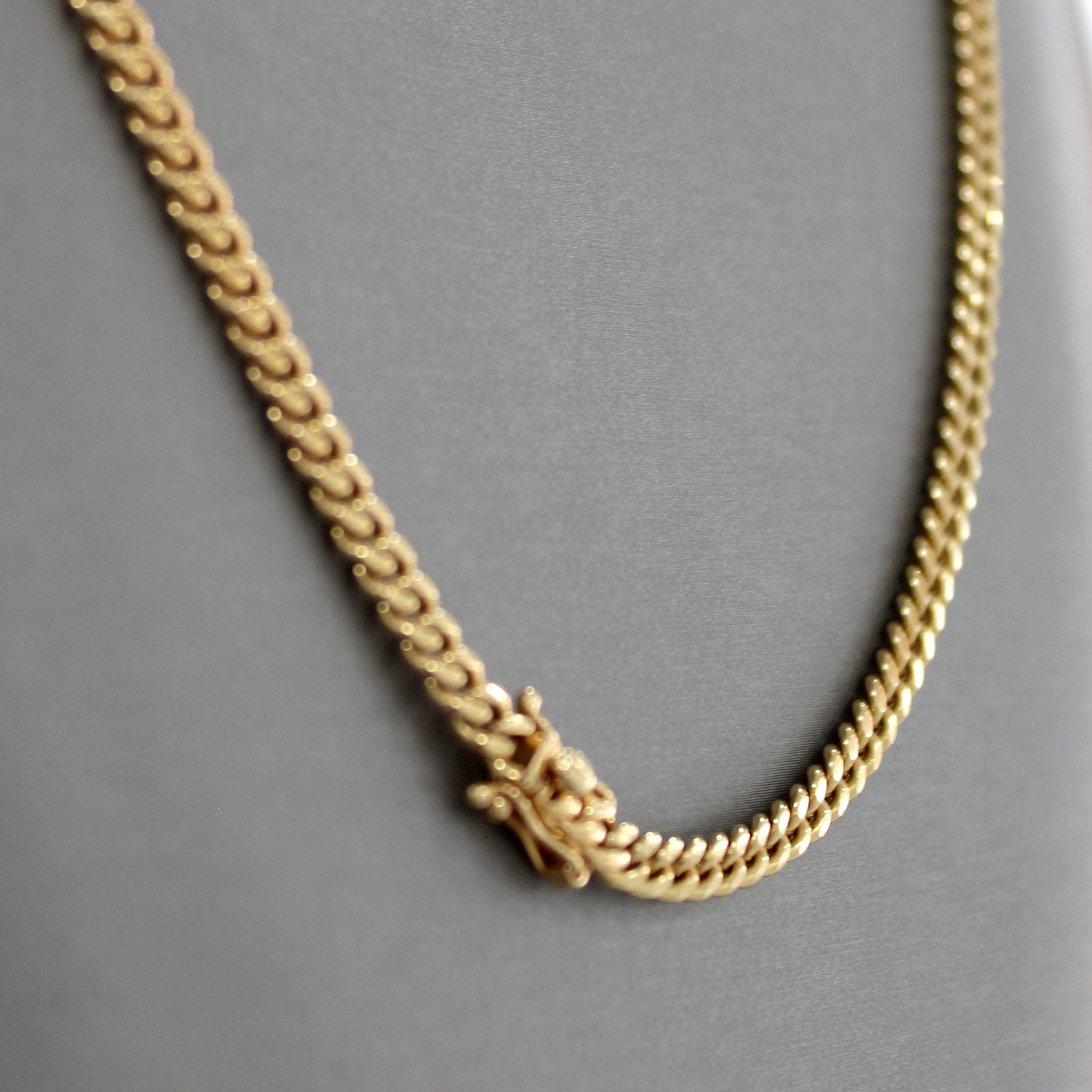 This unisex Cuban link necklace is crafted in 10KT gold, offering both strength and elegance in one design. The interlocking Cuban links provide a bold yet refined look, making it a versatile accessory for everyday wear or special occasions. Suitable for both men and women, this piece is perfect worn solo for a sleek statement or layered with other chains for a personalized style. With its polished finish and secure clasp, it balances sophistication with lasting quality.