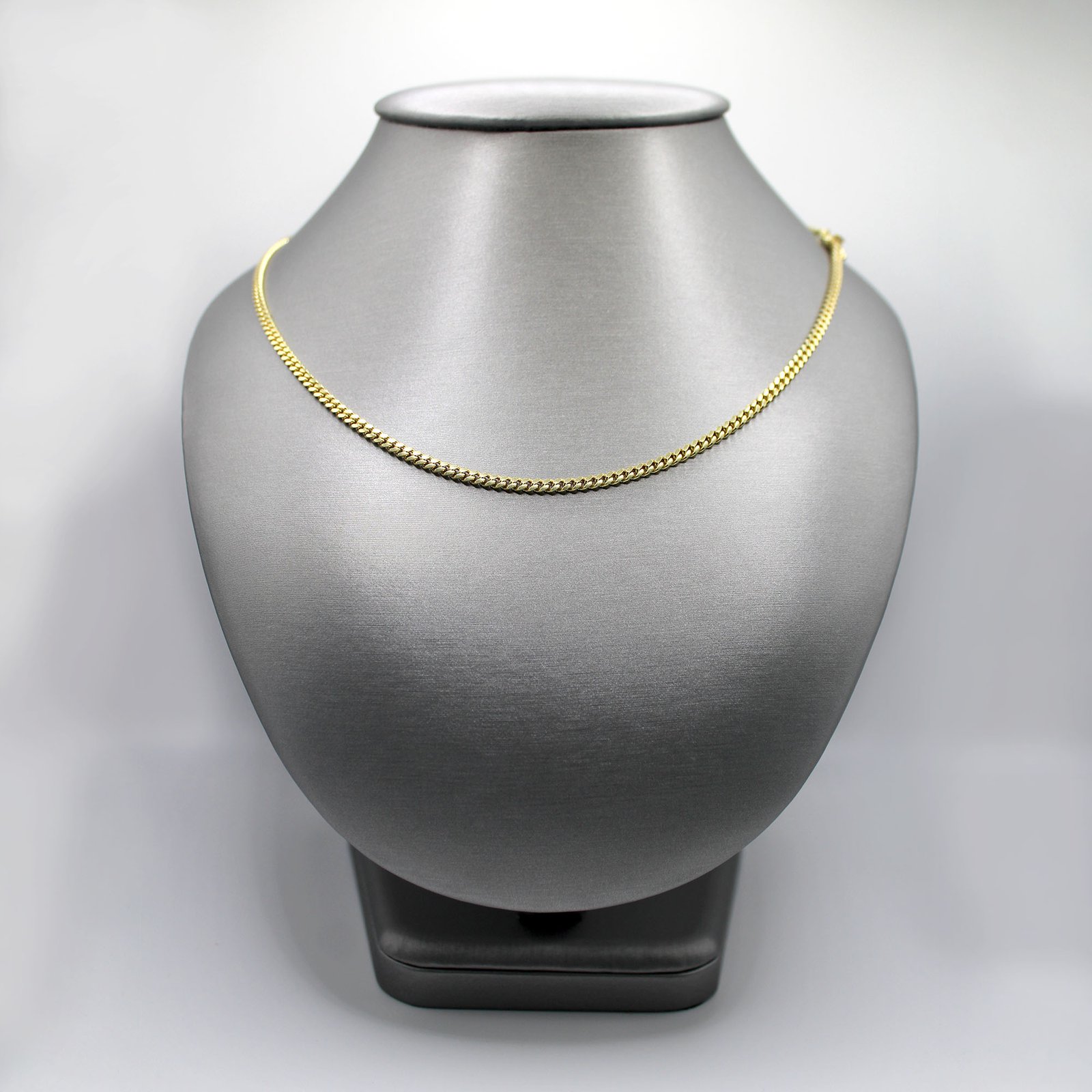 Crafted in rich 14KT yellow gold, this necklace offers a traditional and universally popular look, suitable for both men and women. It features the signature Cuban link design, where interlocking, slightly flattened oval links create a dense, flexible, and comfortable chain that drapes smoothly against the skin. The entire surface is given an immaculate high-polish finish, ensuring a continuous golden shine that maximizes its reflective brilliance. This durable chain is perfect for wearing alone as a sophisticated statement piece or for carrying a favorite pendant.