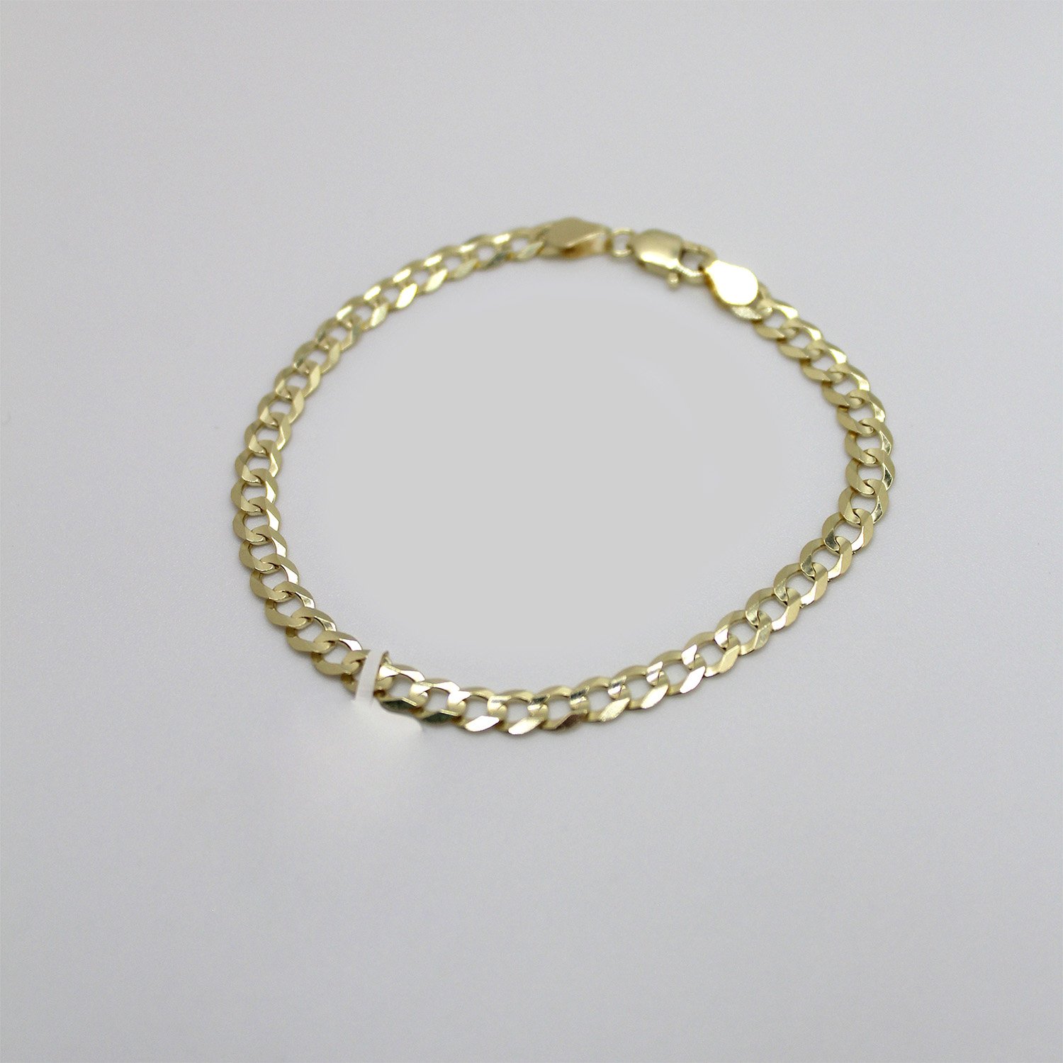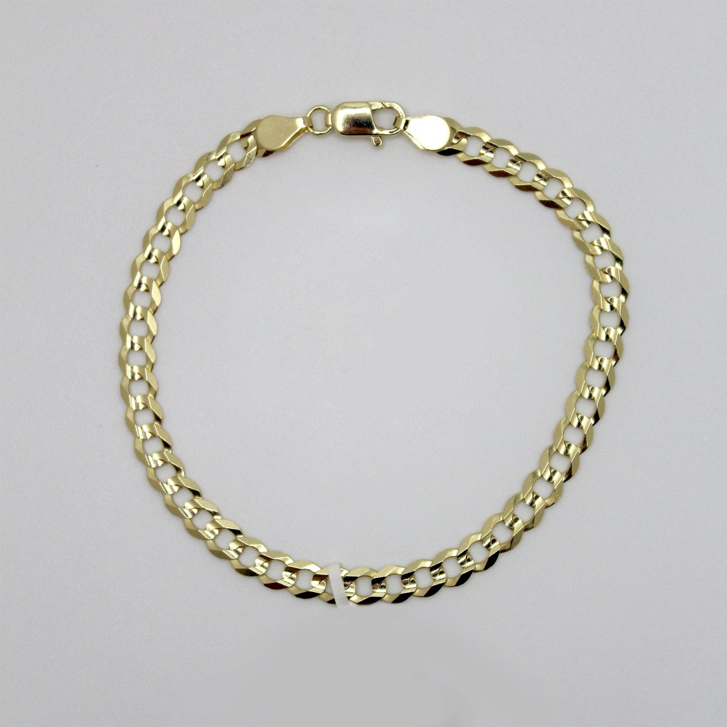 A classic 10KT yellow gold curb link bracelet measuring 7.5 inches in length and 4.8mm in width with a bright, reflective finish.