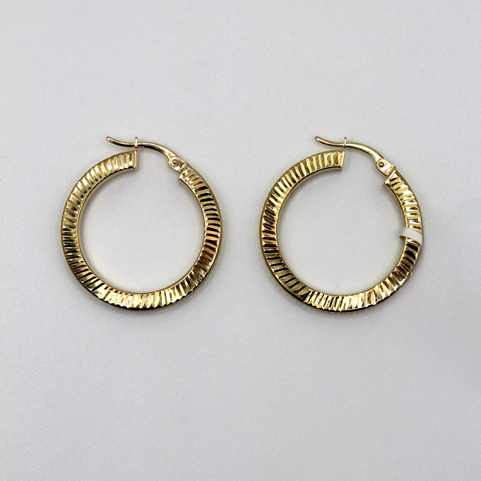 Dimensional and brilliant 14KT gold hoop earrings featuring a continuous textured twisted design for eye-catching sparkle.