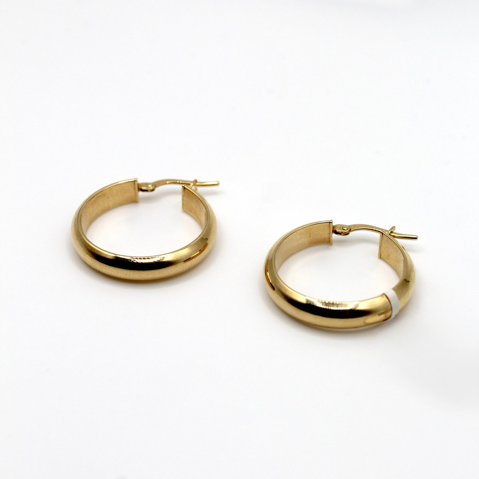 Crafted in rich 14KT yellow gold, these women’s hoop earrings are an essential accessory designed for continuous wear. The round silhouette boasts a wide, rounded profile that feels weighty and luxurious, offering a noticeable presence without being overly large. The entire surface is flawlessly smooth and finished with a brilliant high-polish, which ensures a deep, continuous reflection of light. Secured with a durable hinged closure, these everyday hoops are perfect for adding volume, quality, and a rich, golden gleam to any outfit.