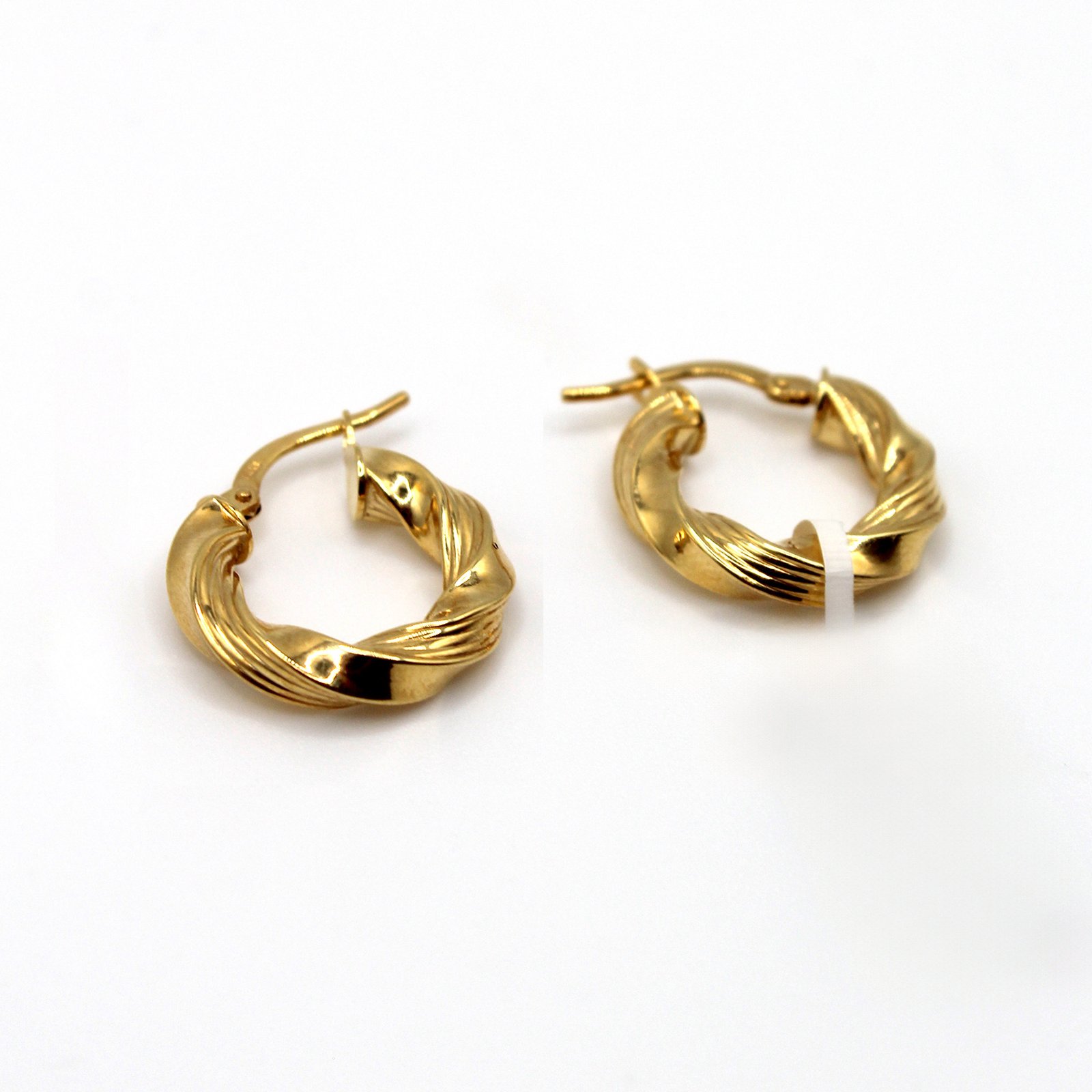 Medium Wide Textured Channel Hoop – 14KT Gold Women’s Earrings