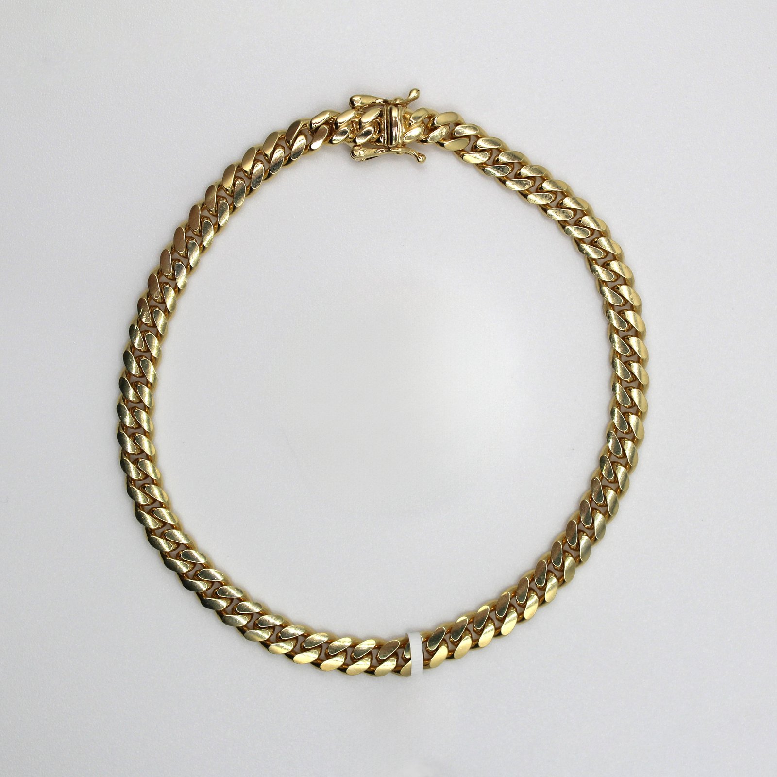 This men’s bracelet is crafted in 10KT gold and features the iconic Cuban link design, known for its durability and sleek, timeless look. The solid links provide a strong yet comfortable fit, while the polished finish ensures a striking shine. Perfect for daily wear or special occasions, this bracelet makes a confident statement on its own or layered with other pieces. A classic essential for any modern man’s jewelry collection.