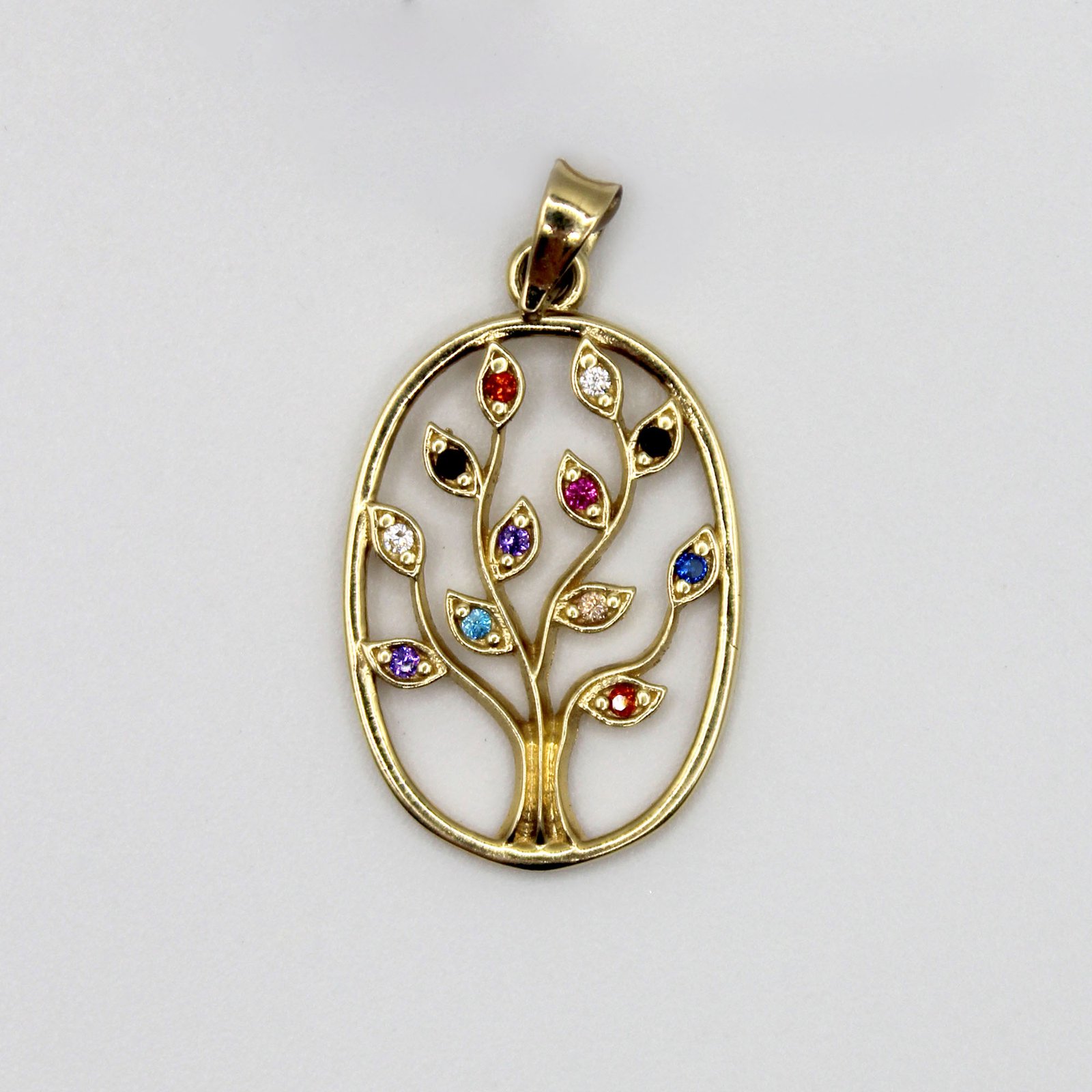 Multi-Color Stone Tree of Life Pendant – 14KT Gold
