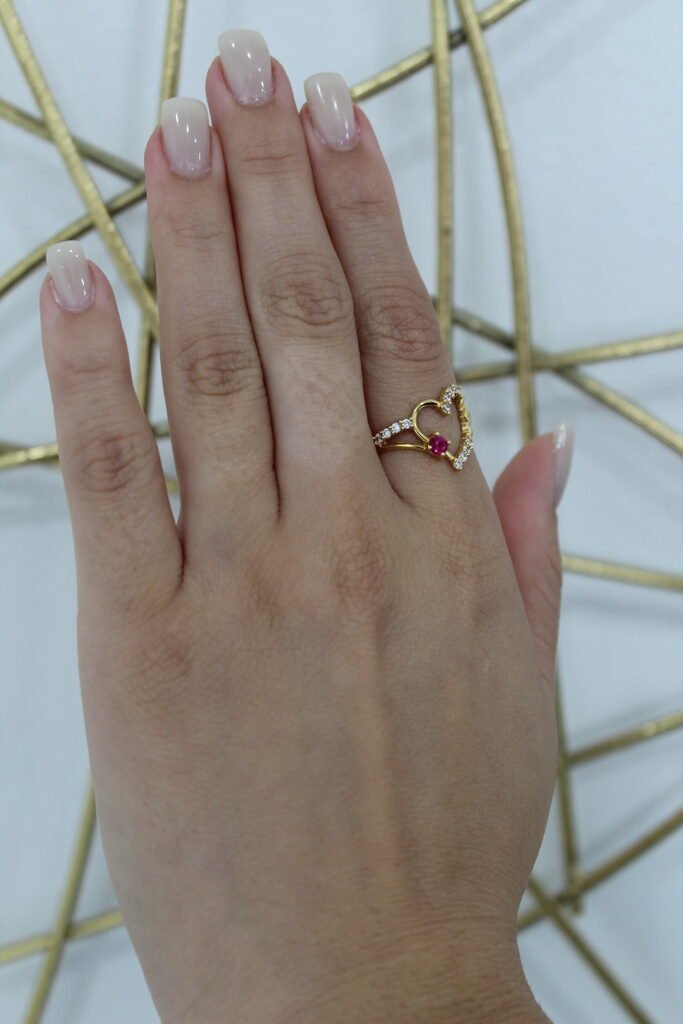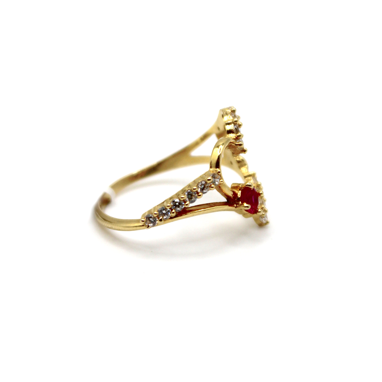Open Heart Red & White Stone Accent Ring– 14KT, Size 6.5