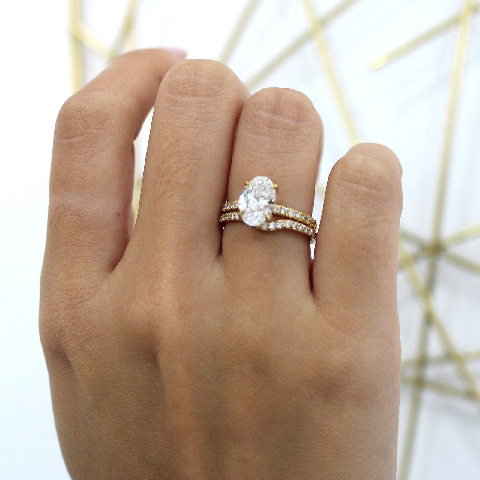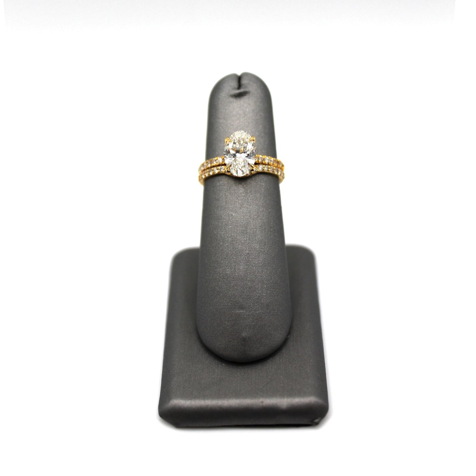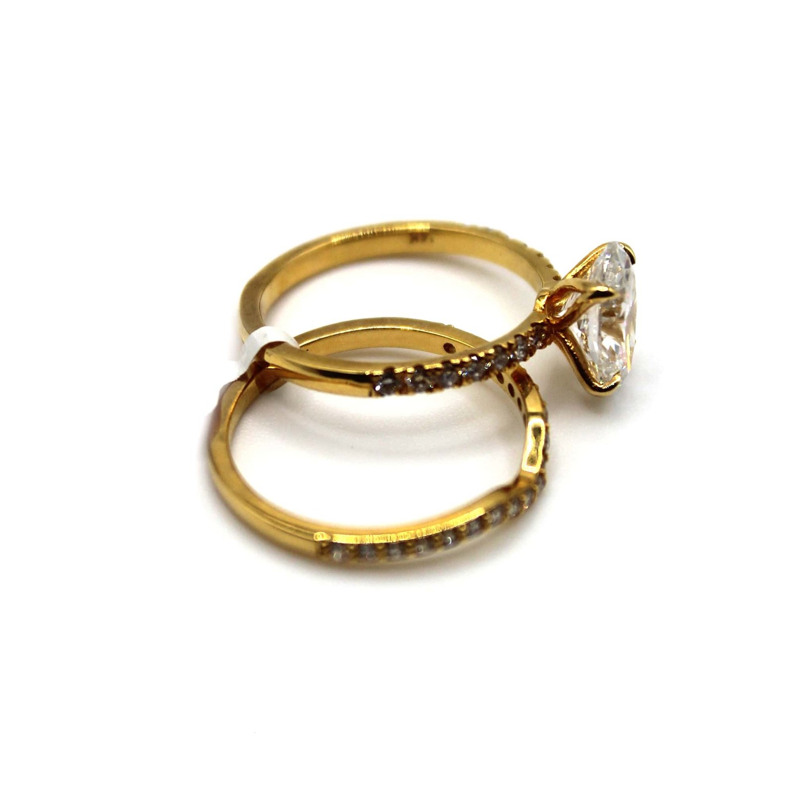 This 14KT gold engagement ring set captures elegance with its brilliant oval-cut centerpiece, perfectly complemented by a sleek band adorned with sparkling accent stones. Designed to symbolize love and commitment, this ring combines modern sophistication with classic charm, making it the perfect choice for special moments and everyday luxury.