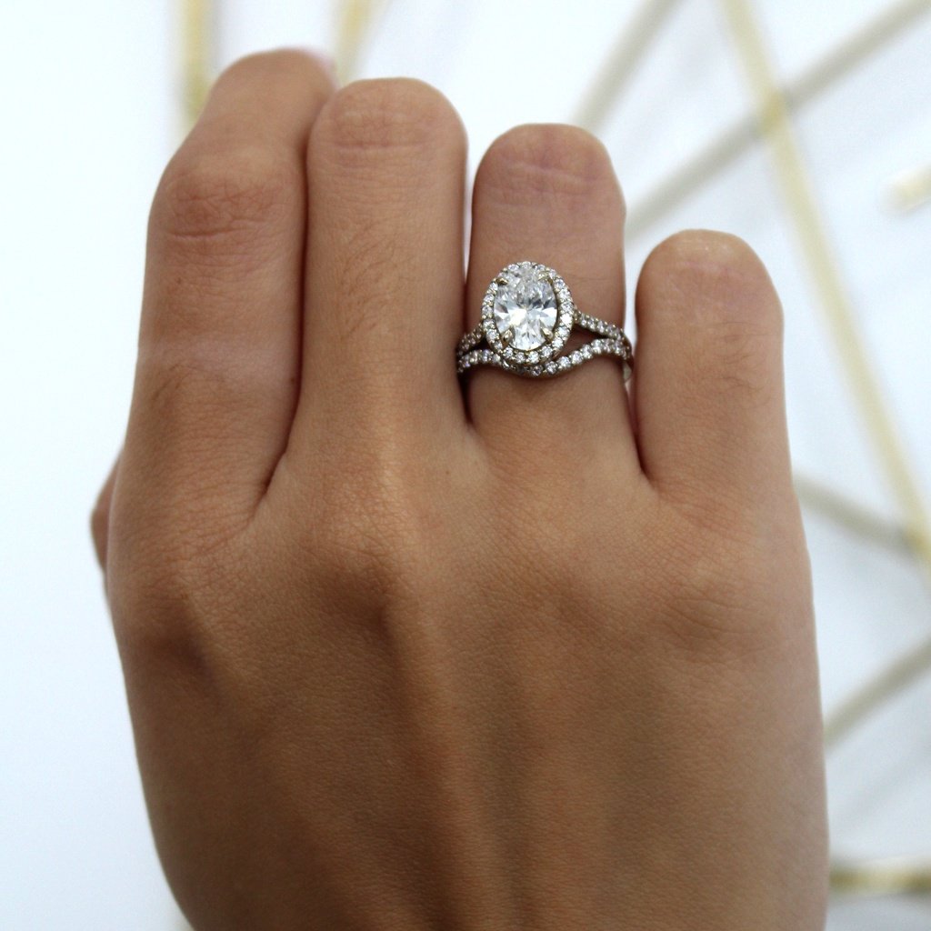 L.G Diamond Oval Halo Engagement Ring Set – 14KT White Gold Size, 7