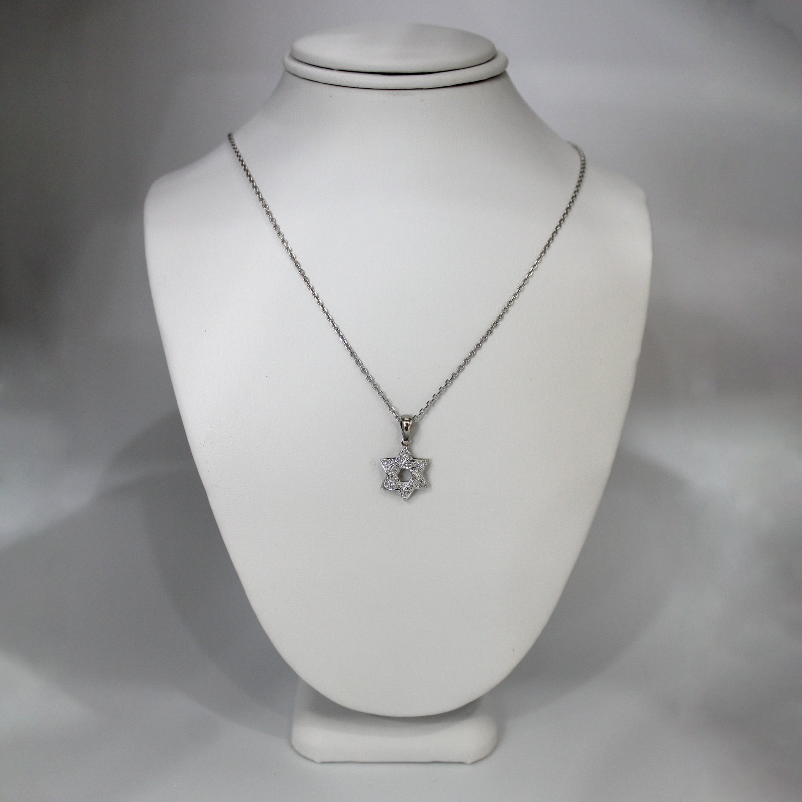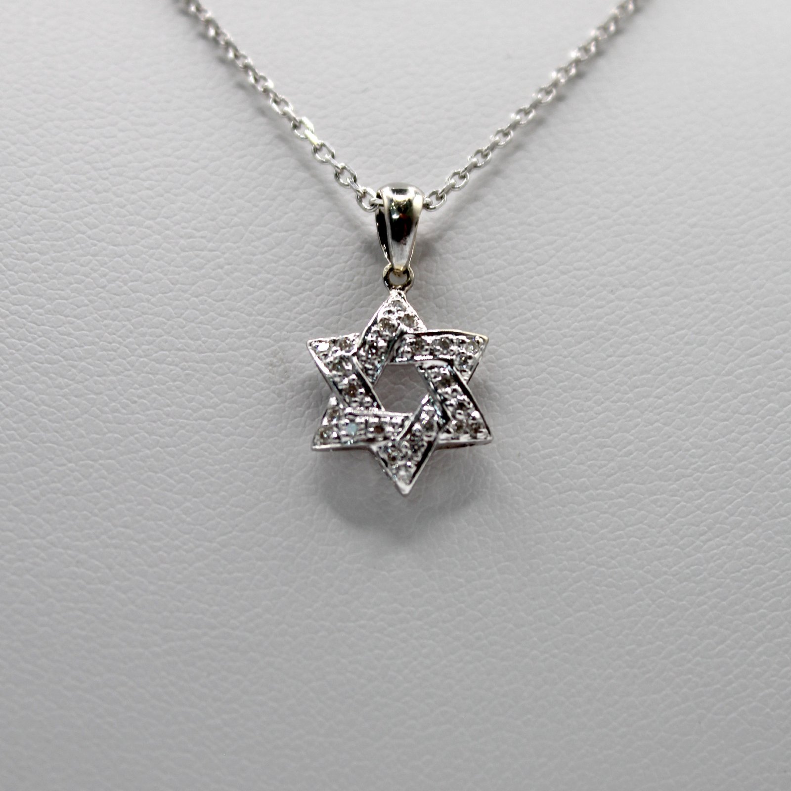 Pave White Stone Star of David Pendant Necklace – 14KT Gold Women’s
