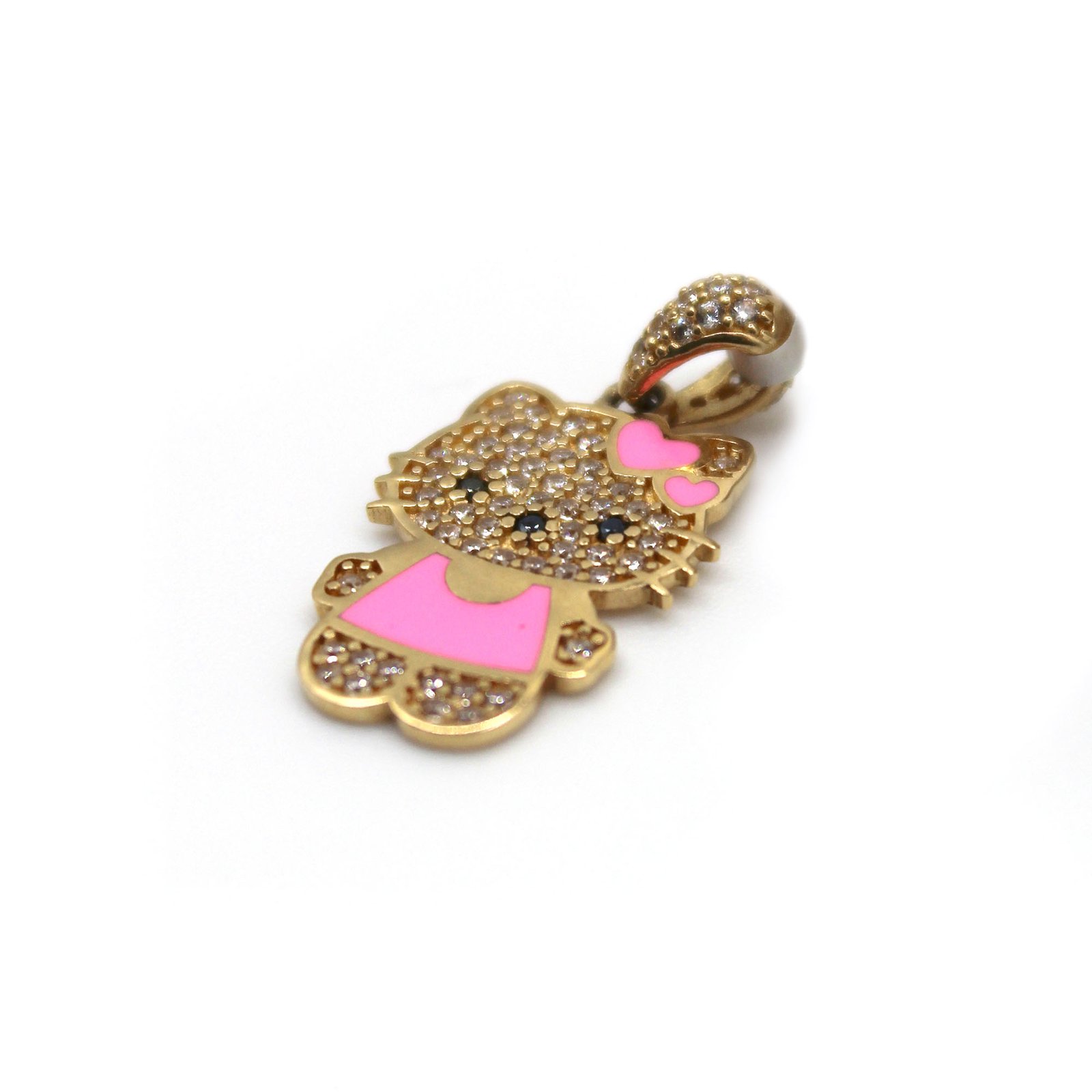 The Pink Kitty Sparkle pendant brings fun and elegance together. Crafted in 14KT yellow gold, it features a charming kitty design with pink enamel details and dazzling zirconia accents that catch the light beautifully. This piece makes a sweet gift for children, teens, or anyone who loves a touch of playful sparkle in their jewelry collection.