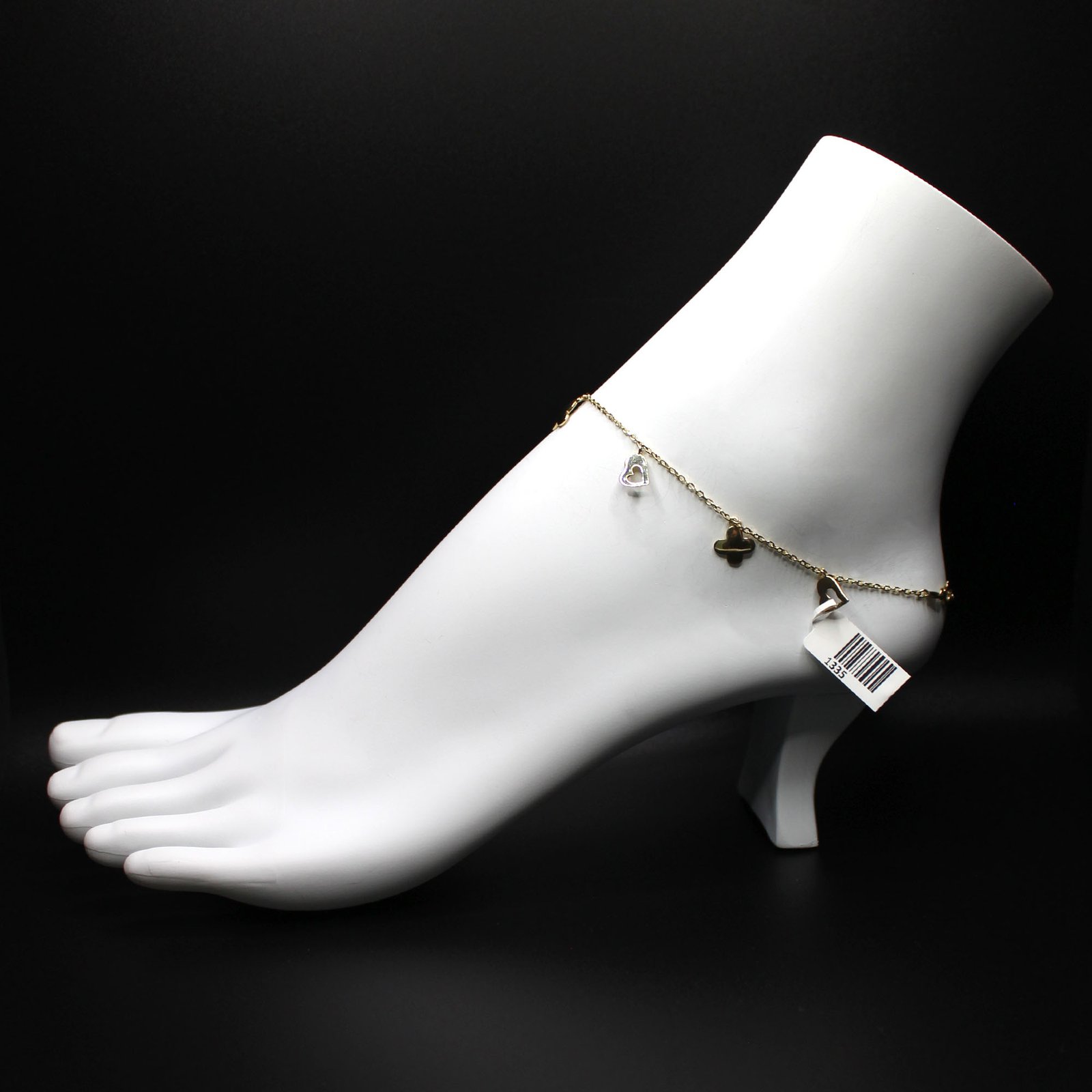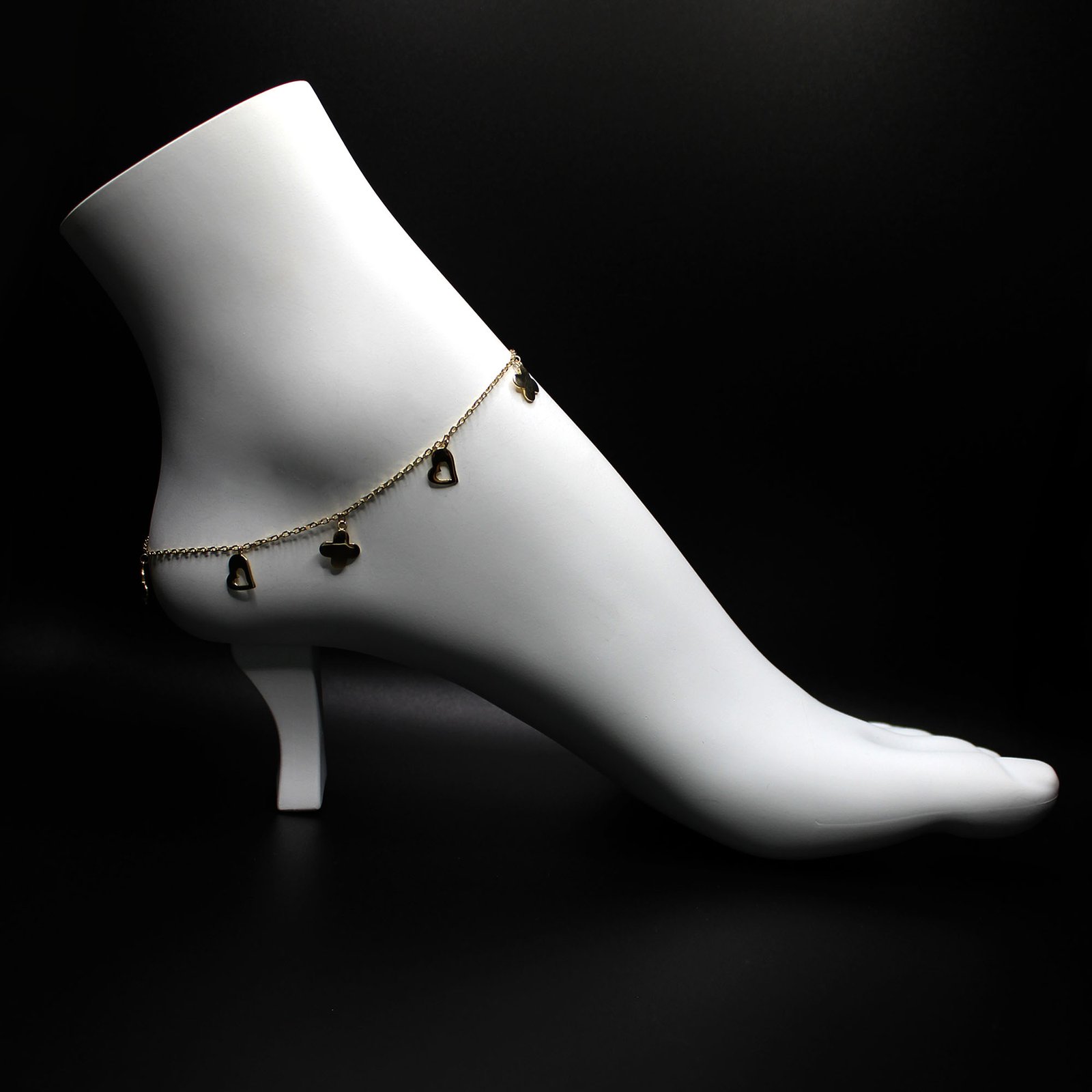 A 14KT gold anklet with playful charms including a heart and clover design, adding a fun and elegant touch to your look.