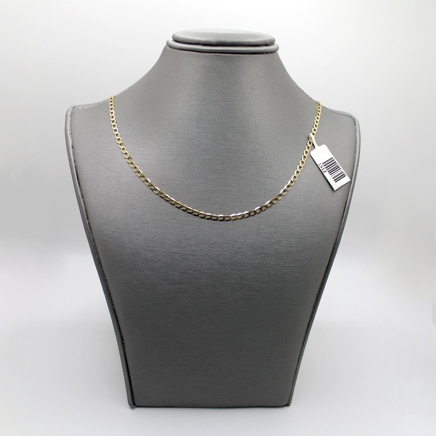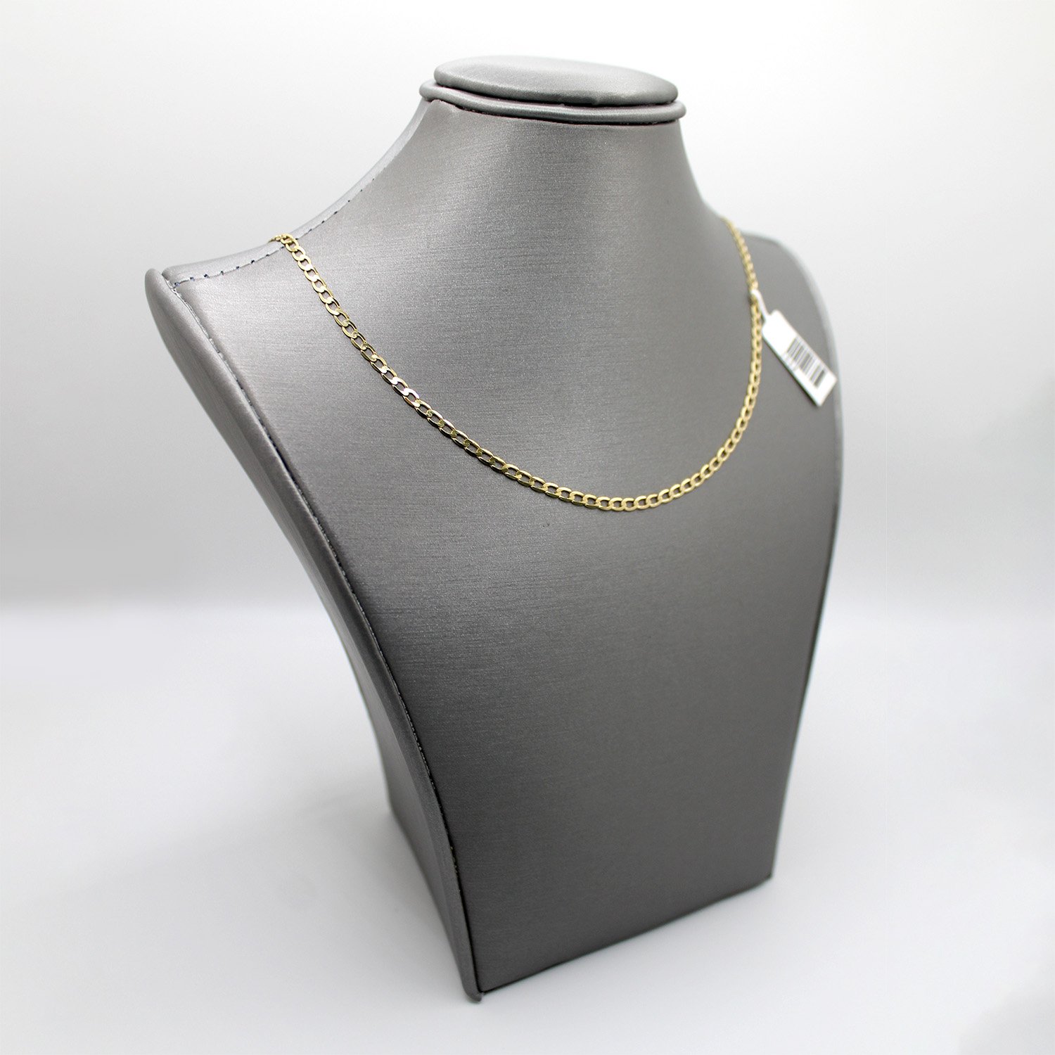 A sleek 10KT yellow gold curb chain measuring 18 inches in length and 2.4mm in width with a brilliant high-polish finish.