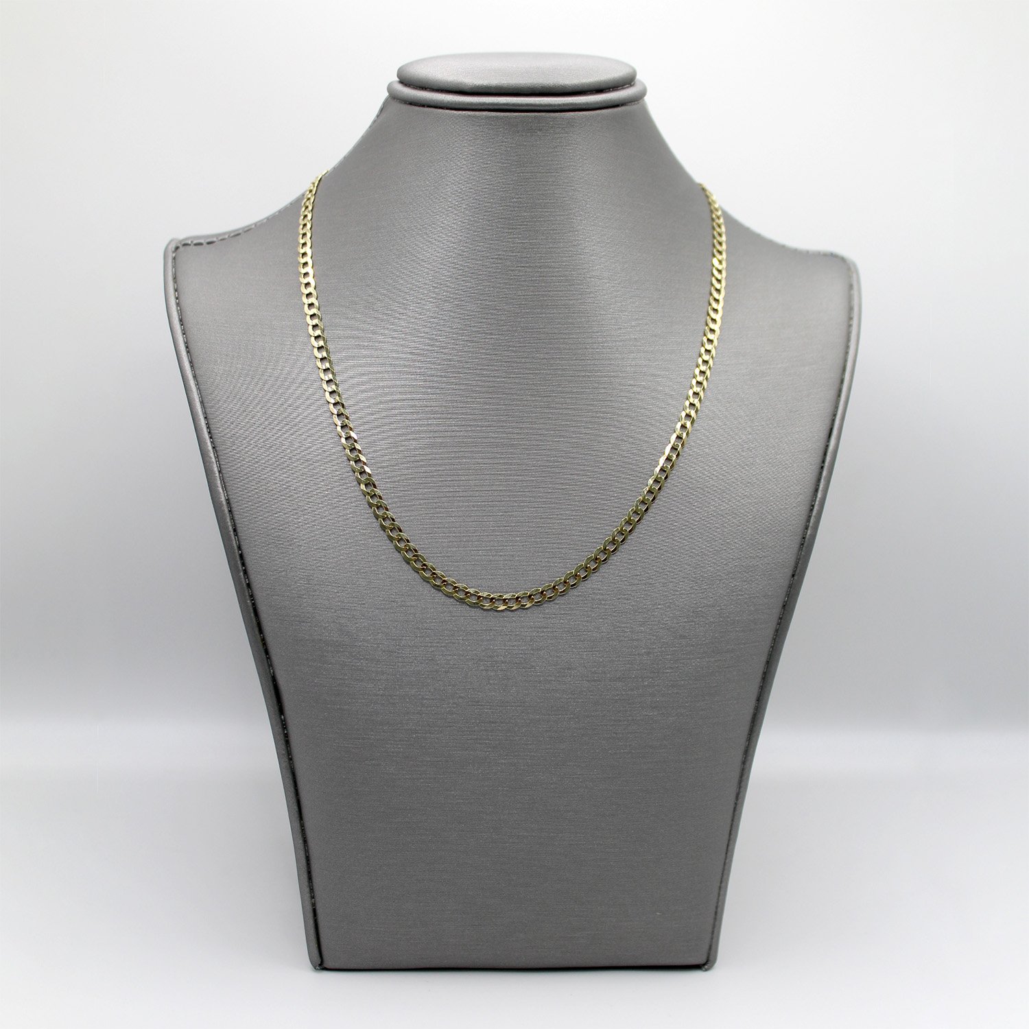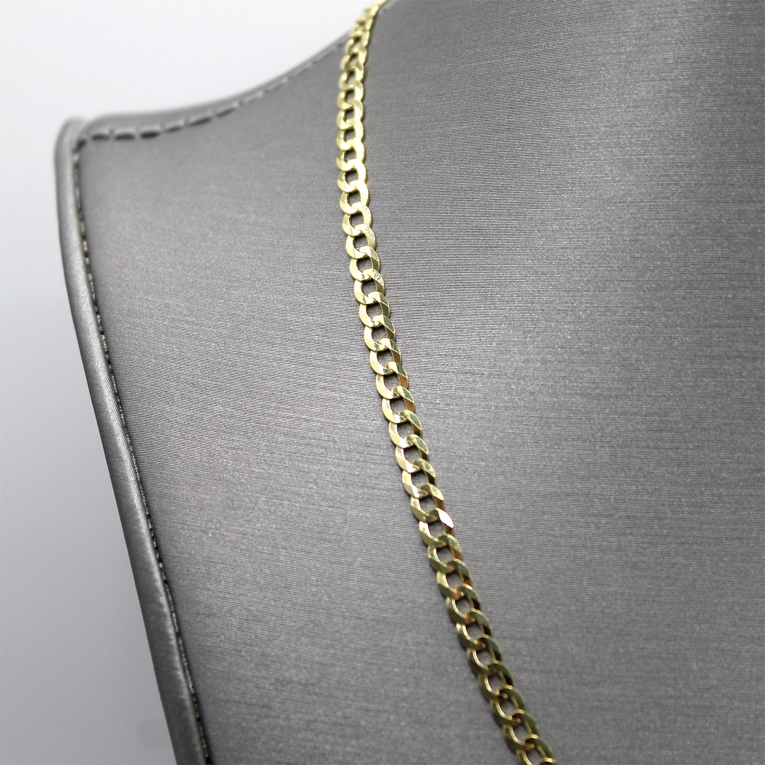 A classic 14KT yellow gold curb chain featuring a traditional flat-link design and a brilliant high-polish finish.
