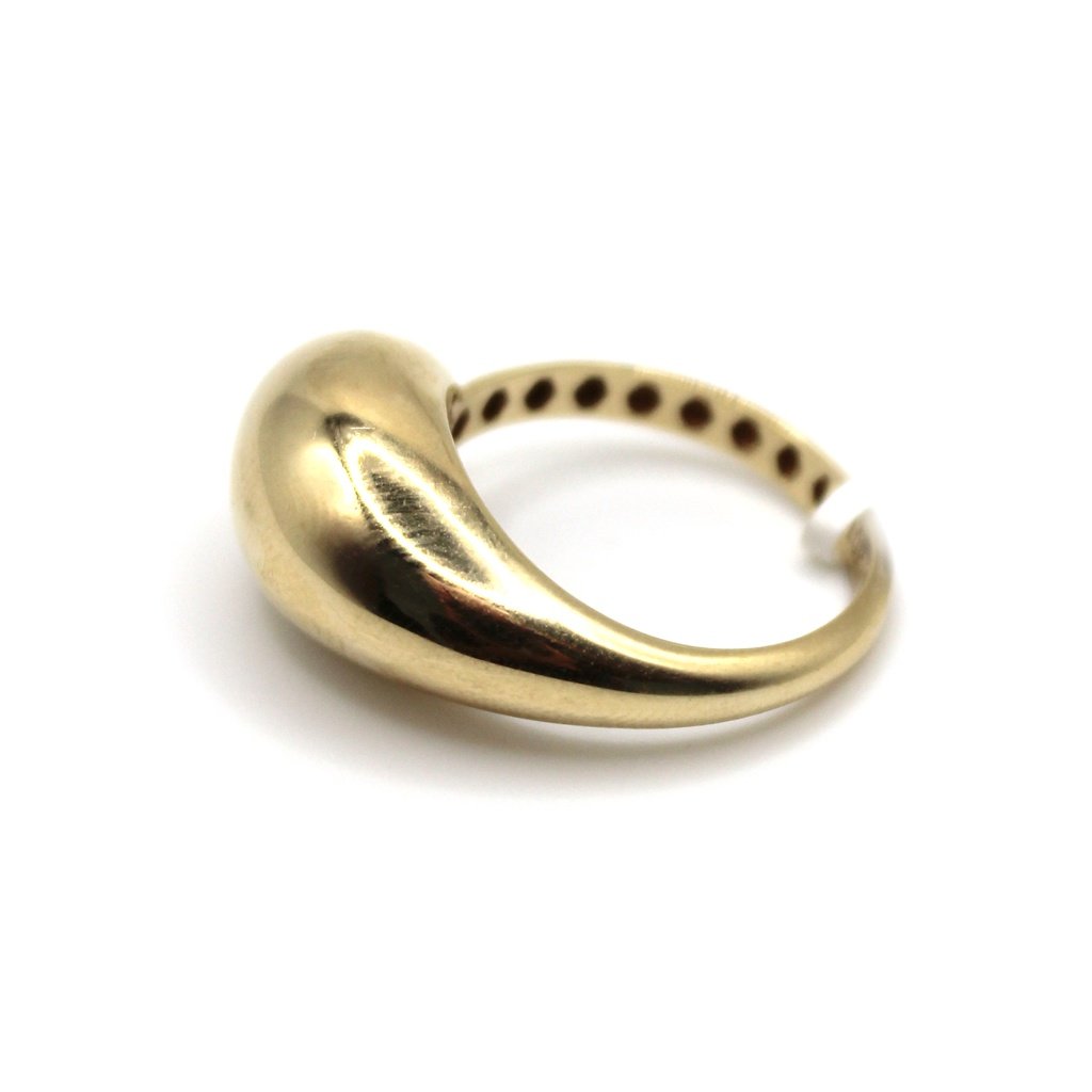 Crafted in 10KT yellow gold, this dome ring features a smooth, high-polish finish that creates a bold yet elegant statement. Its minimalist design makes it versatile enough to pair with other jewelry or stand out on its own. Perfect for everyday wear or special occasions, this polished gold dome ring is a staple piece in any jewelry collection.
