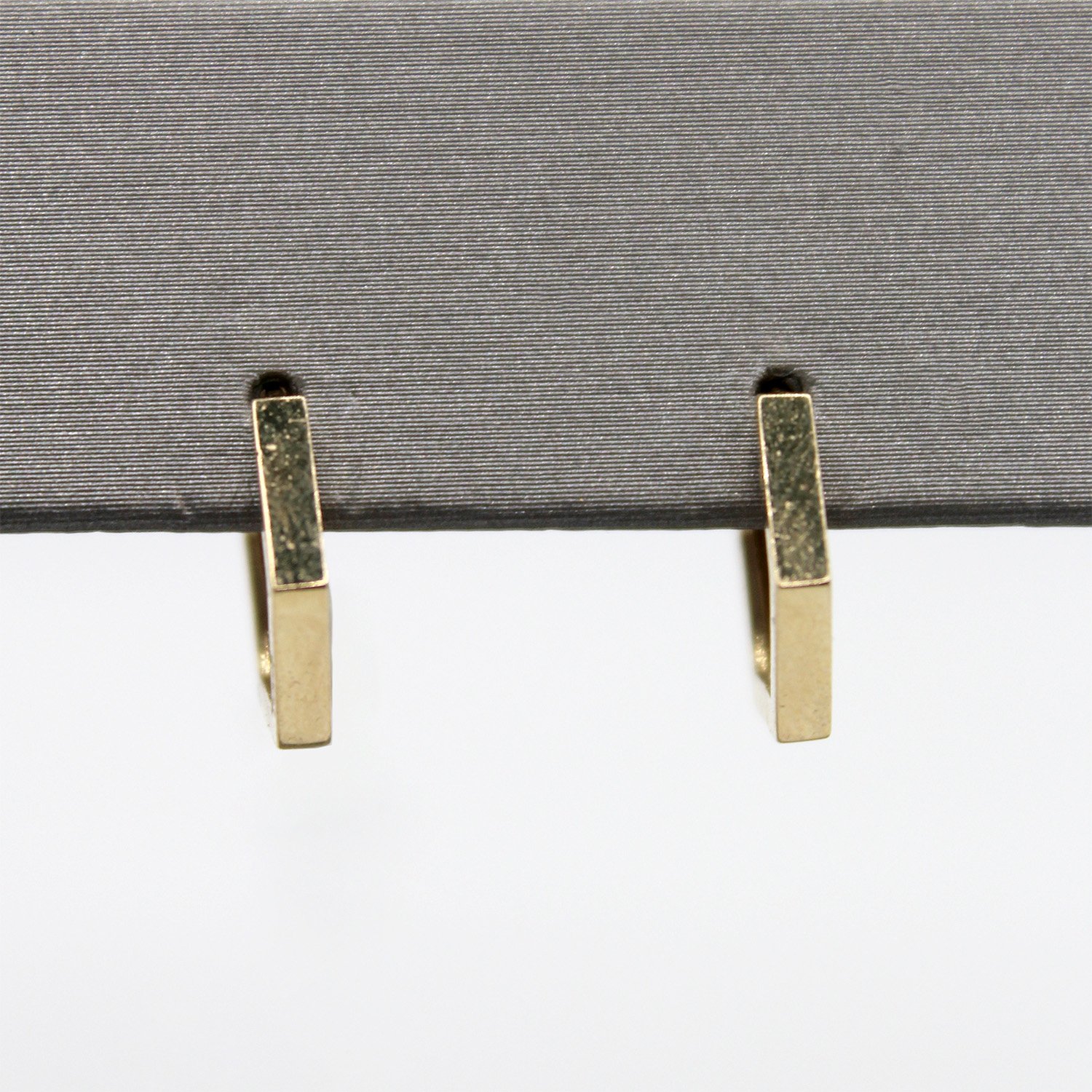 A modern pair of 10KT yellow gold hoop earrings featuring a sharp, six-sided hexagonal silhouette and a brilliant high-polish finish.