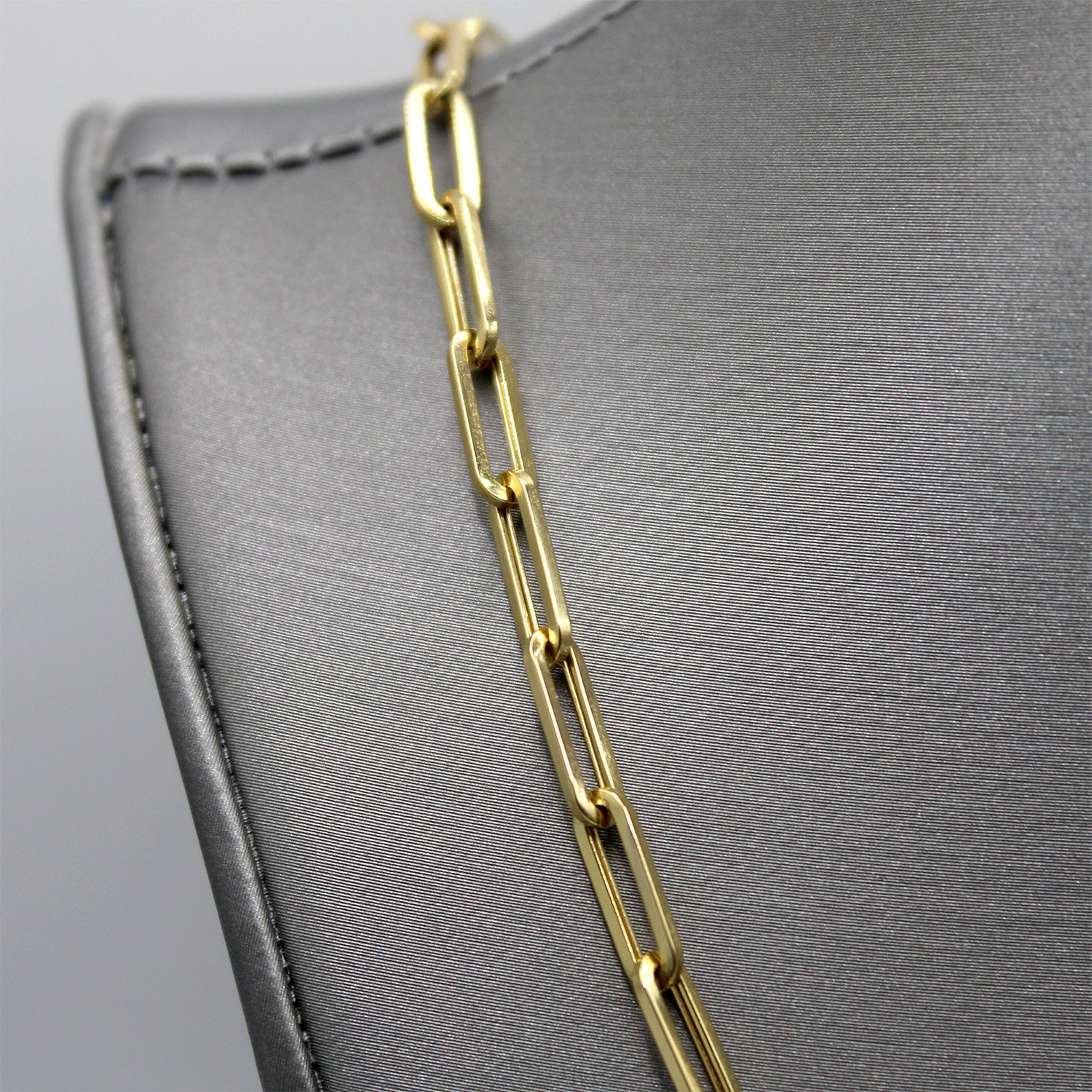 A trendy 10KT yellow gold chain featuring elongated paperclip-style links and a brilliant high-polish finish.
