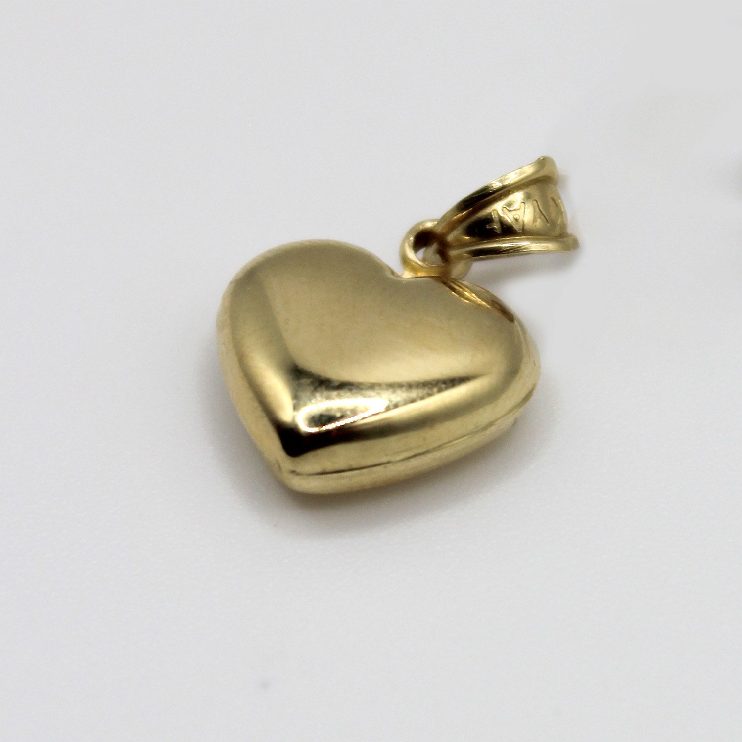 A classic 10KT yellow gold puffed heart pendant featuring a smooth, three-dimensional design and a brilliant high-polish finish.