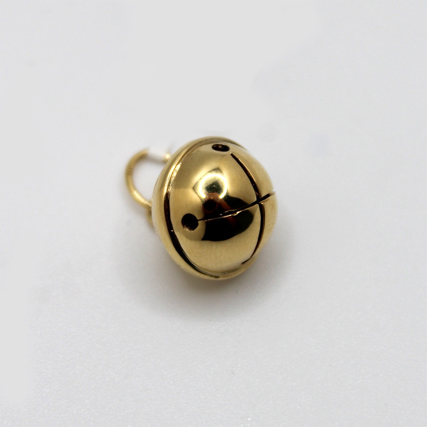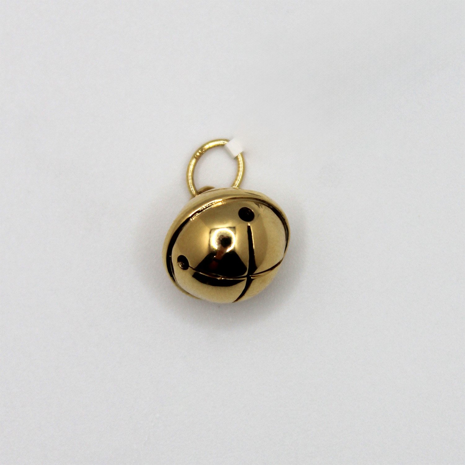 A unique 10KT yellow gold pendant featuring a classic spherical bell design with a bright, high-polish finish.