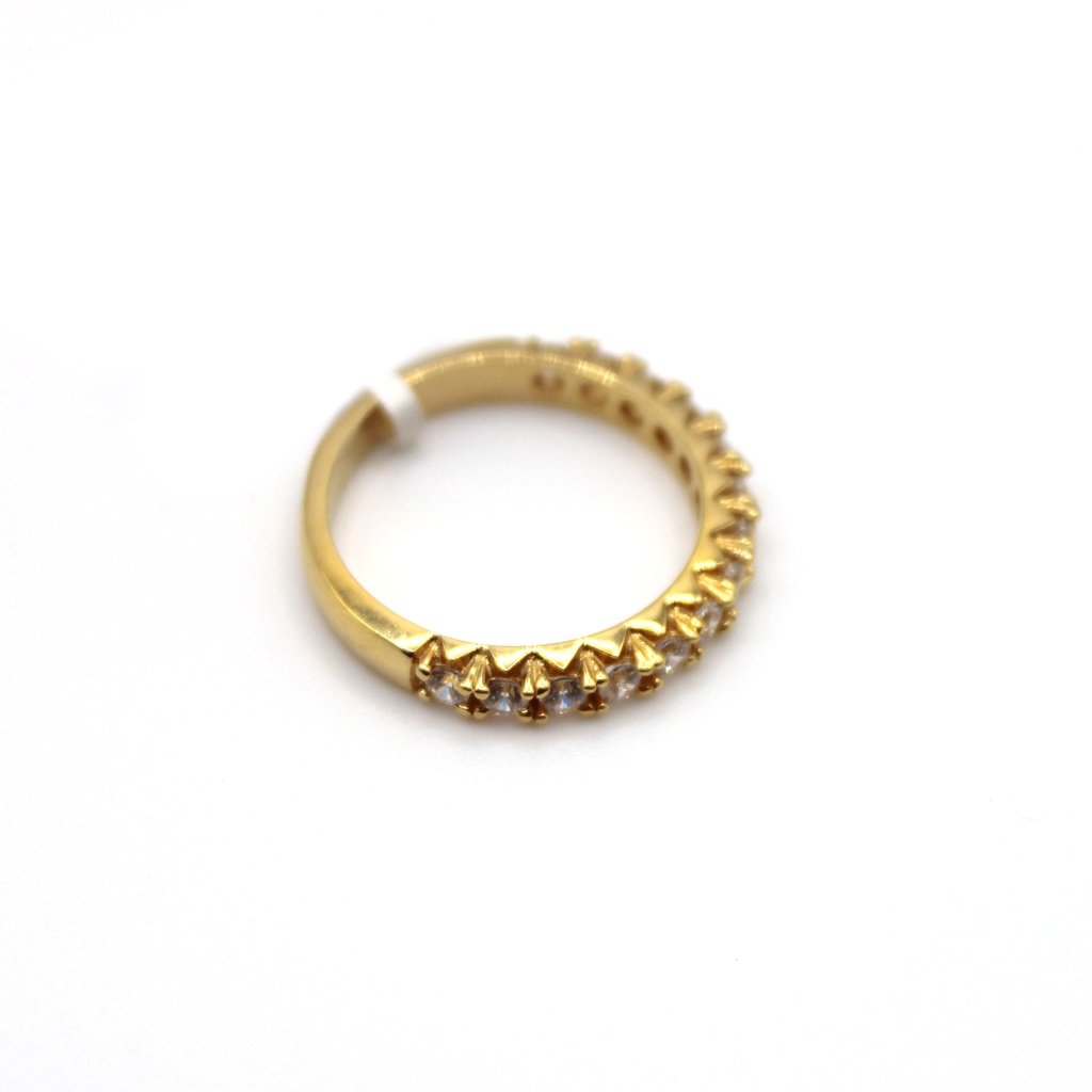 Crafted in 14KT yellow gold, the Radiant Crown ring features a striking crown-inspired setting adorned with sparkling zirconia stones. Its unique raised pattern creates a regal and elegant look, making it a perfect choice for those who want to stand out with sophistication. Whether worn alone or stacked, this ring adds a touch of luxury and brilliance to any outfit.