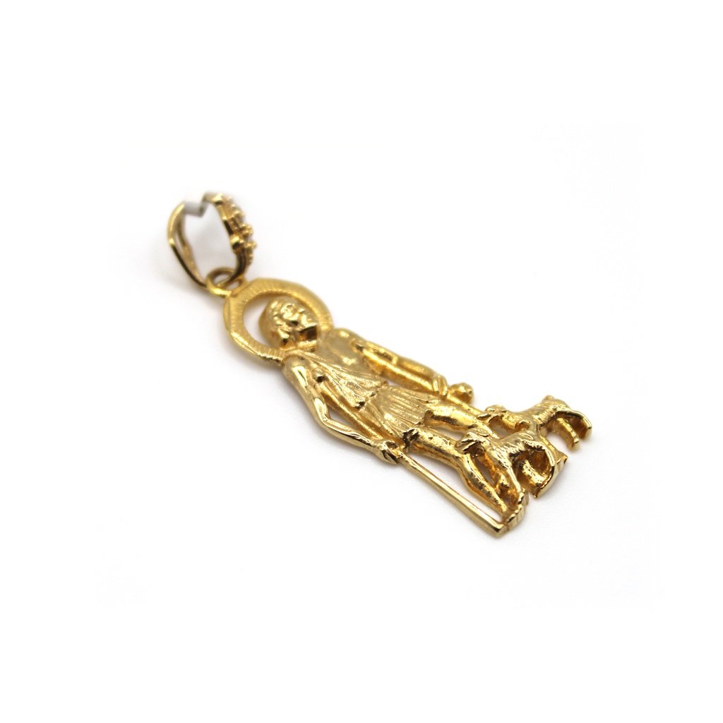 This 10KT yellow gold San Lázaro pendant is a meaningful piece that embodies devotion and resilience. Featuring the beloved saint with his staff and dogs, the detailed craftsmanship highlights both tradition and artistry. Known as a symbol of healing and protection, this pendant is a timeless accessory that carries deep spiritual significance, making it perfect for daily wear or as a cherished gift.