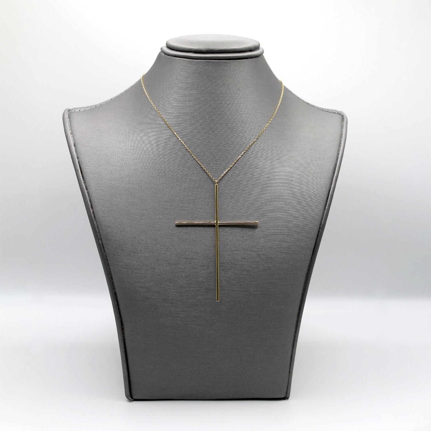 An elegant 14KT yellow gold necklace featuring a minimalist, oversized cross pendant with a brilliant high-polish finish.