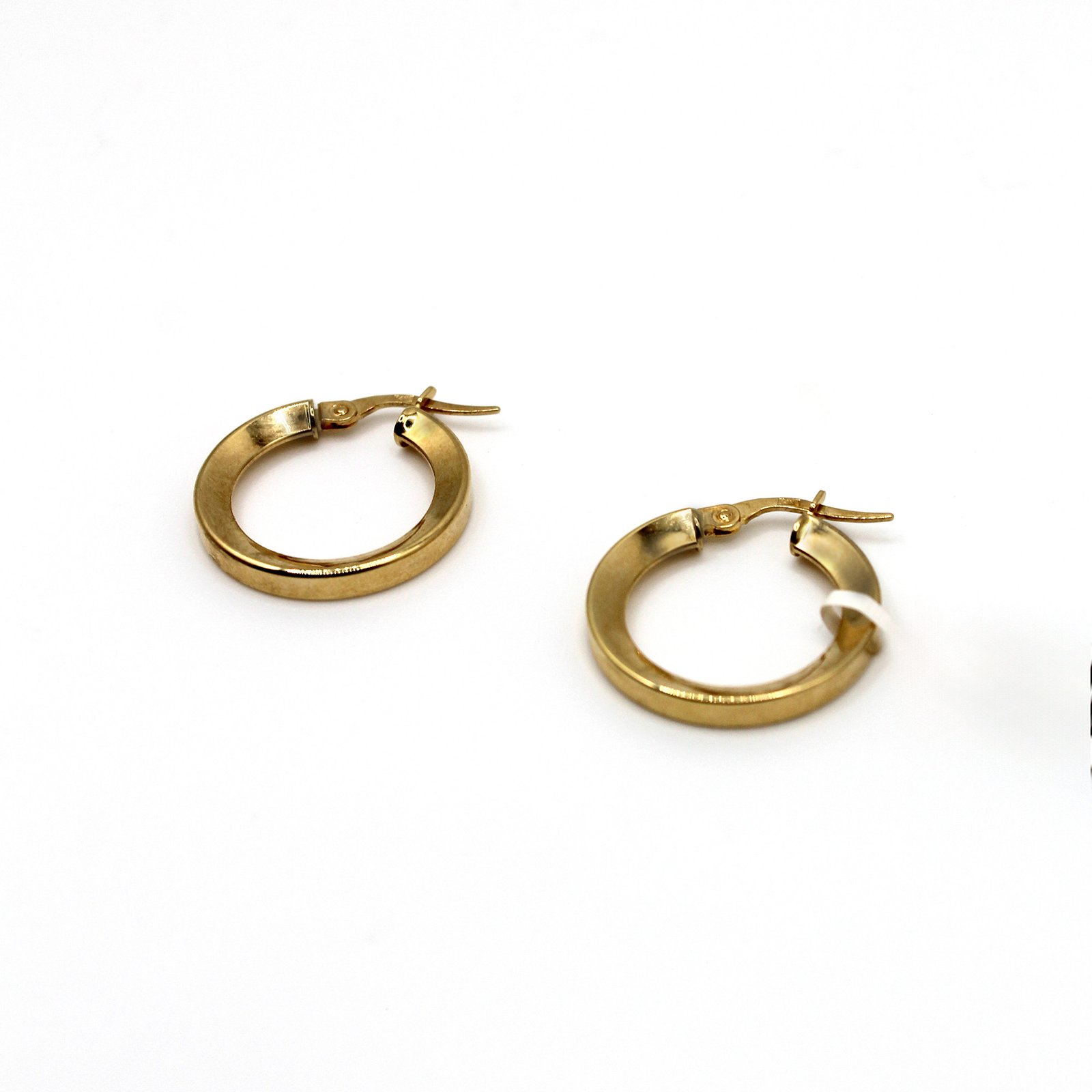 Crafted in rich 14KT yellow gold, these women’s hoop earrings are designed to make a dramatic statement. They feature an exceptionally wide and flat band that creates a bold, contemporary look, resembling a chic, rounded square. The entire surface boasts a smooth, high-polish finish, which maximizes light reflection and emphasizes the volume of the gold. Secured with a durable hinged closure, these substantial hoops are perfect for adding a touch of high-fashion structure and luxury to any outfit.