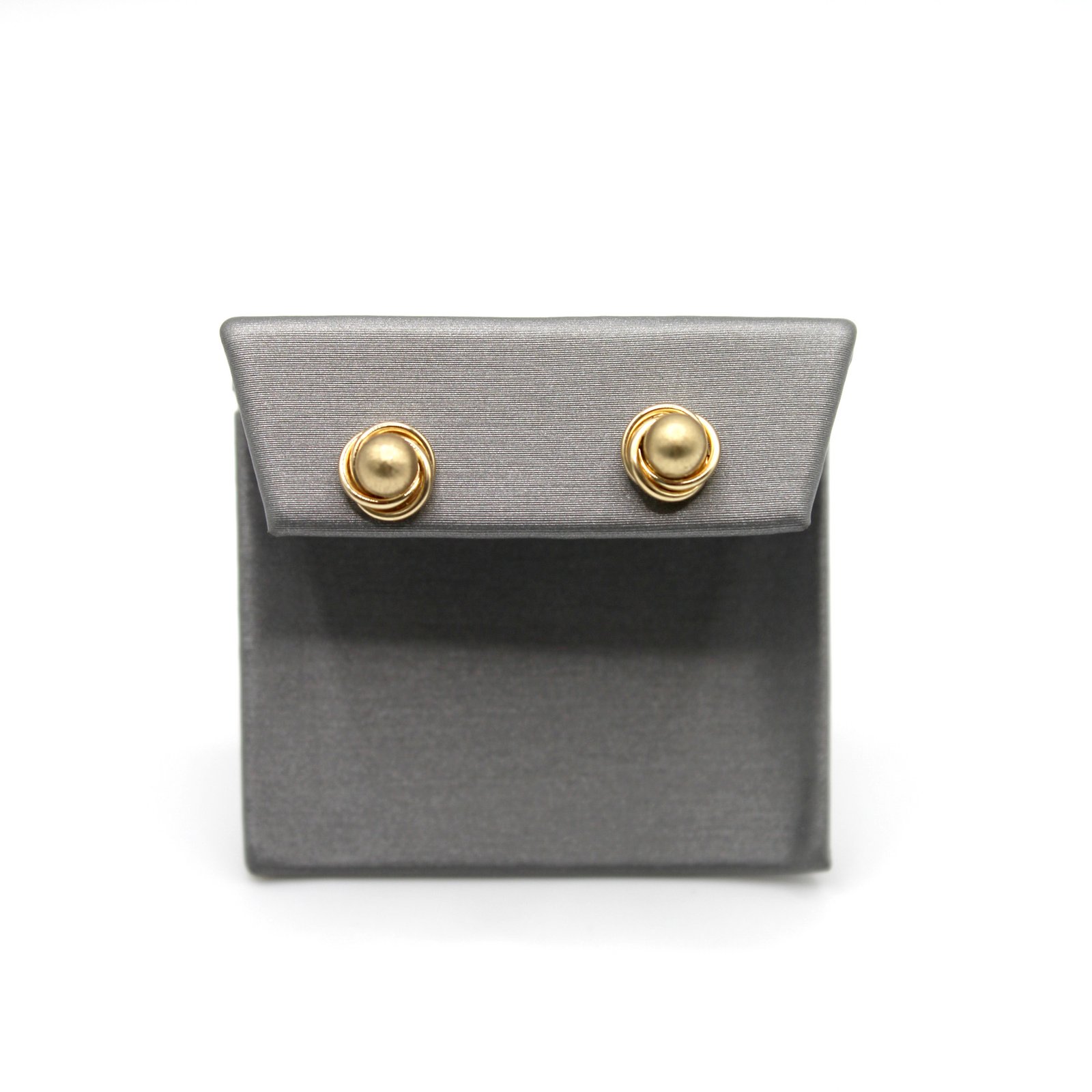 These charming 14KT gold stud earrings combine a classic gold ball centerpiece with a whimsical, surrounding swirl of textured gold. The contrasting finishes—smoothly polished and finely etched—give the petite design a beautiful sense of movement and dimension. Their lightweight and artistic look makes them perfect for adding a subtle, sophisticated touch to everyday wear. They are a timeless accessory that offers a unique alternative to a simple gold stud.