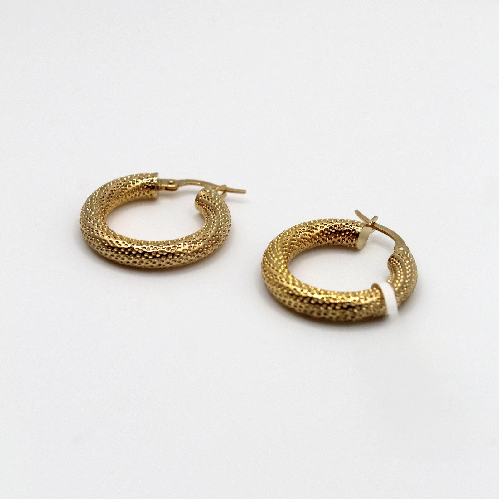 Crafted in radiant 14KT gold, these women’s hoop earrings are a stylish statement piece. The chunky, round silhouette is elevated by a sophisticated dot or granulated texture across the surface, giving the gold a unique, shimmering dimension that is much richer than a simple polish. This distinctive design adds visual depth and a touch of vintage flair. Complete with a secure hinged closure, these comfortable hoops are perfect for adding a bold, luxurious texture to both everyday and evening ensembles.