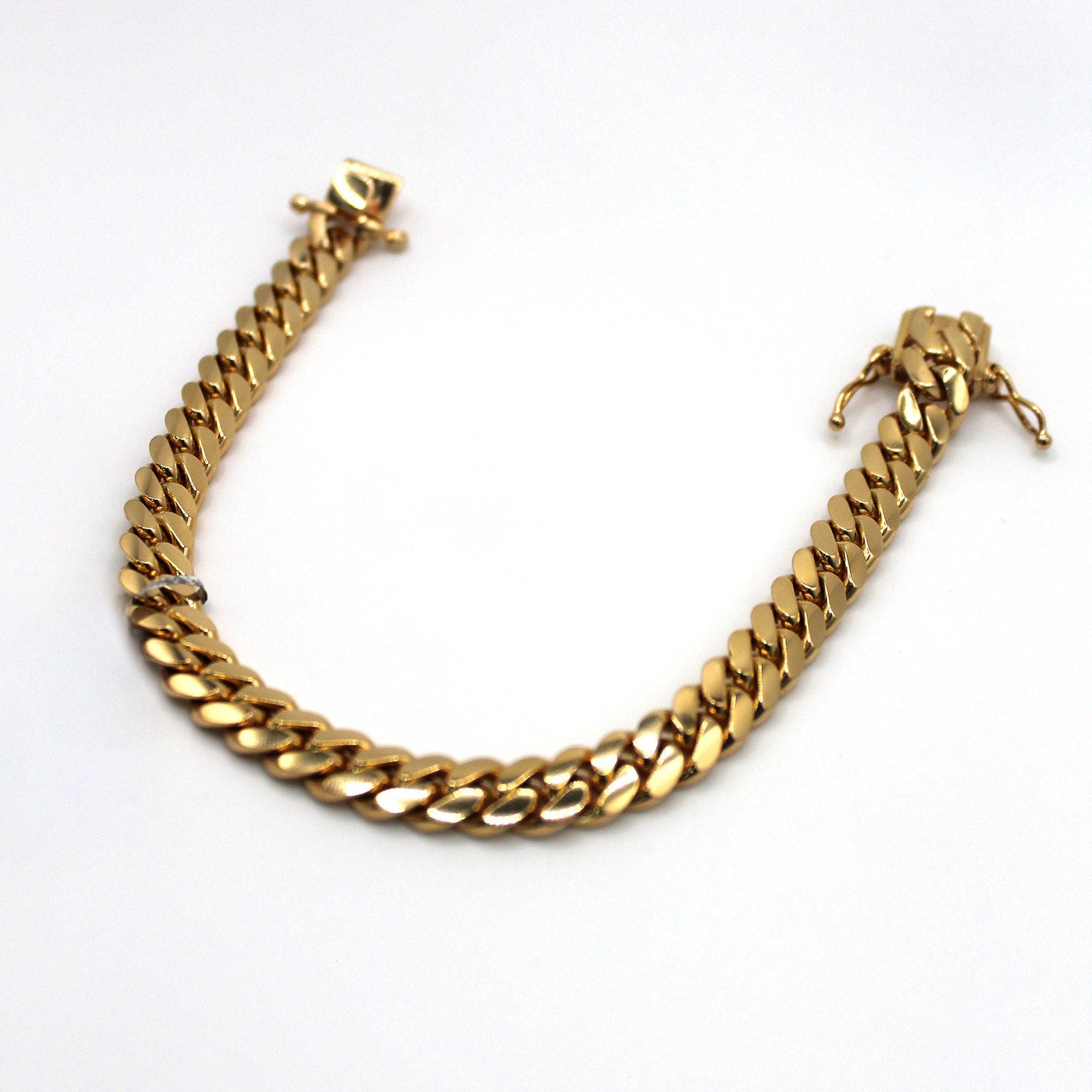 Crafted from 10KT gold, this bracelet features a bold twisted rope design that stands out for its texture and shine. The intricate pattern adds depth and sophistication, while the sturdy clasp ensures a secure and comfortable fit. Perfect for everyday wear or as a refined accessory for formal occasions, this bracelet brings a timeless and masculine touch to any collection.