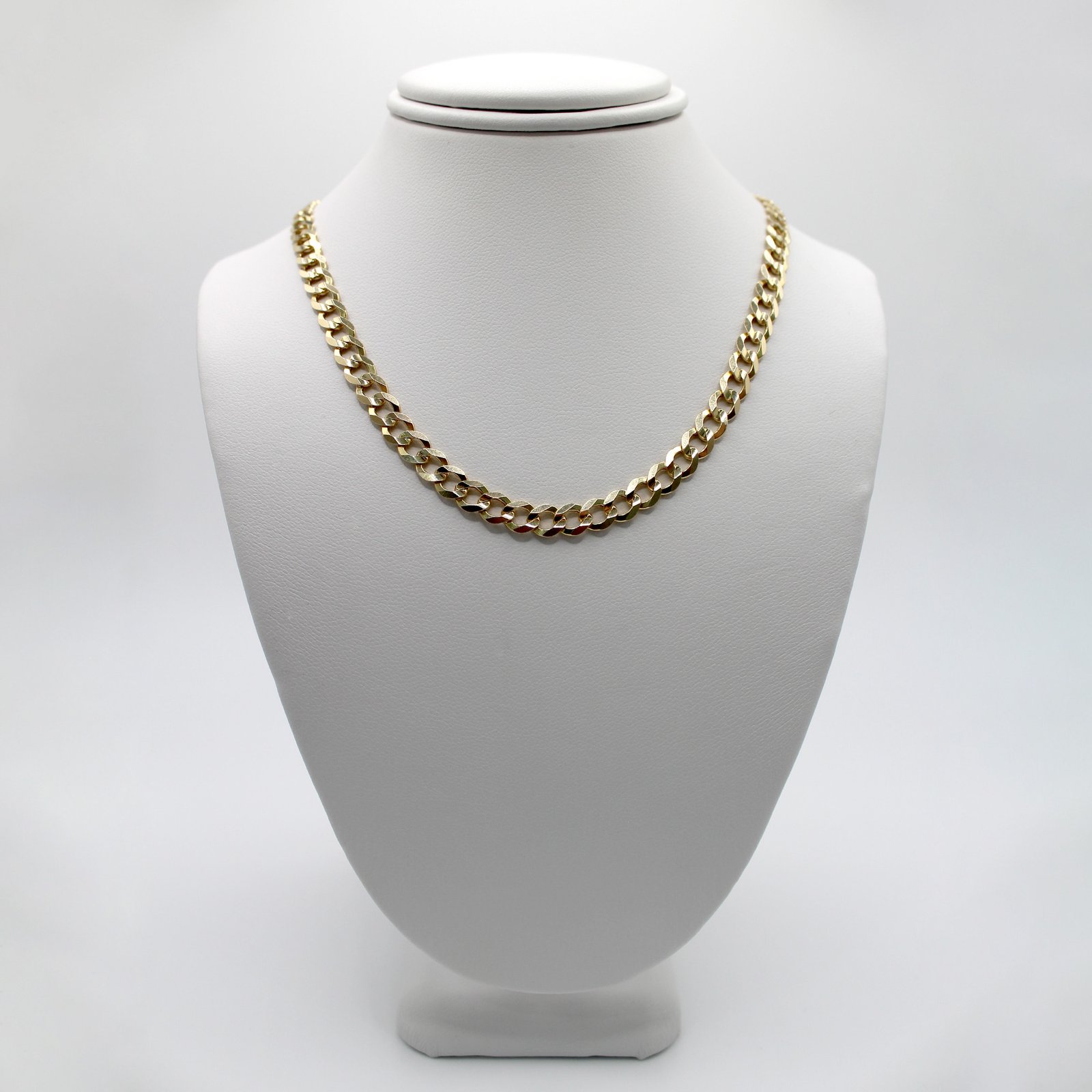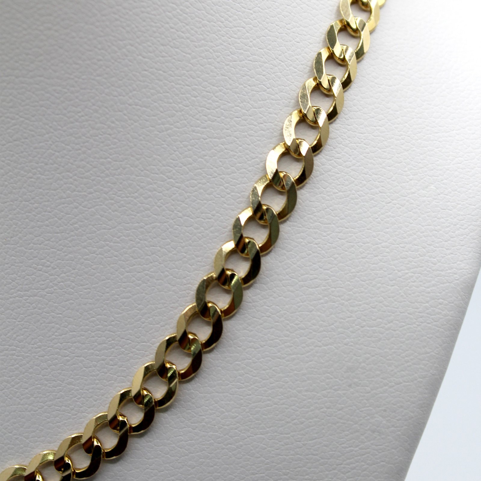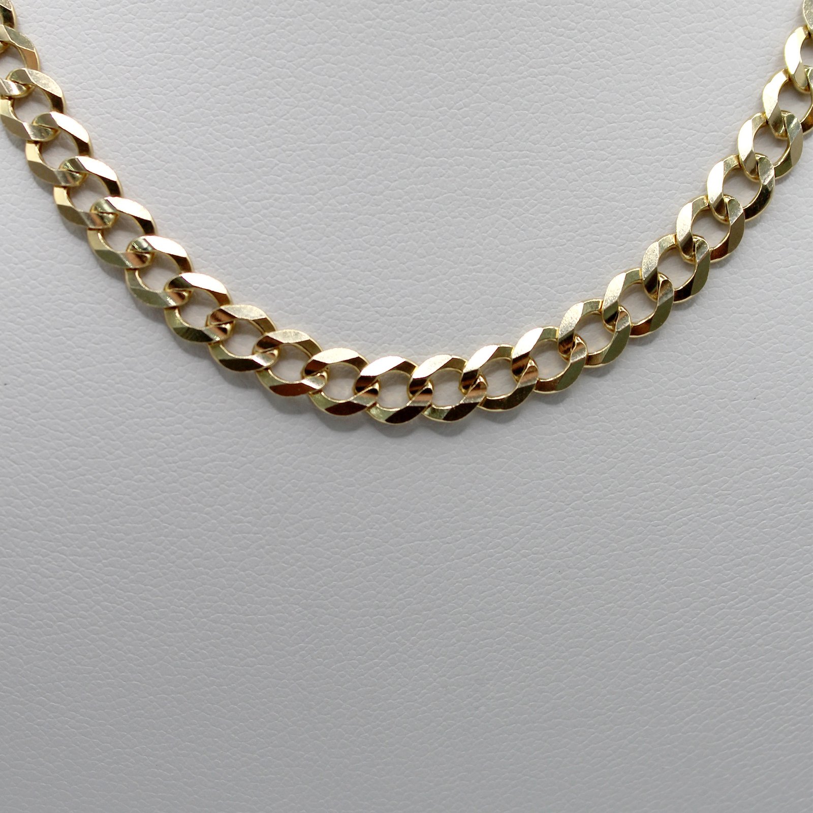 Crafted in radiant 14KT yellow gold, this unisex necklace offers a classic, foundational look. It features the traditional curb link design, where interlocking oval links lie flat for a solid, comfortable drape. The surface of the links is enhanced with the precise Corte de Brillo finish, which creates countless tiny facets that catch and reflect light with exceptional brilliance. This subtle texture gives the chain more sparkle than a simple polish. Perfect for everyday wear, this durable chain is ideal for wearing alone as a bold statement or for showcasing a favorite pendant.