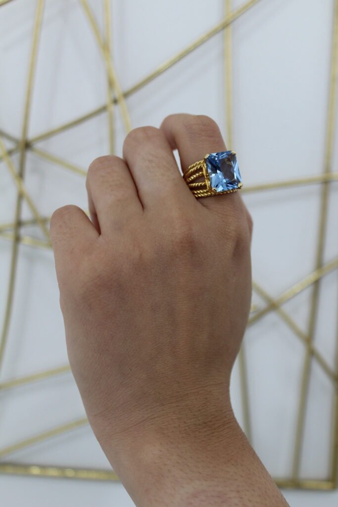 A bold 10KT gold ring with a striking blue stone, radiating elegance and timeless charm.