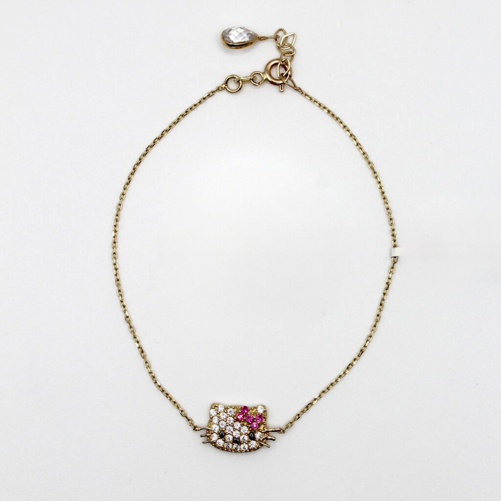 Pave Cat Face Charm – 10KT Gold Adjustable Bracelet