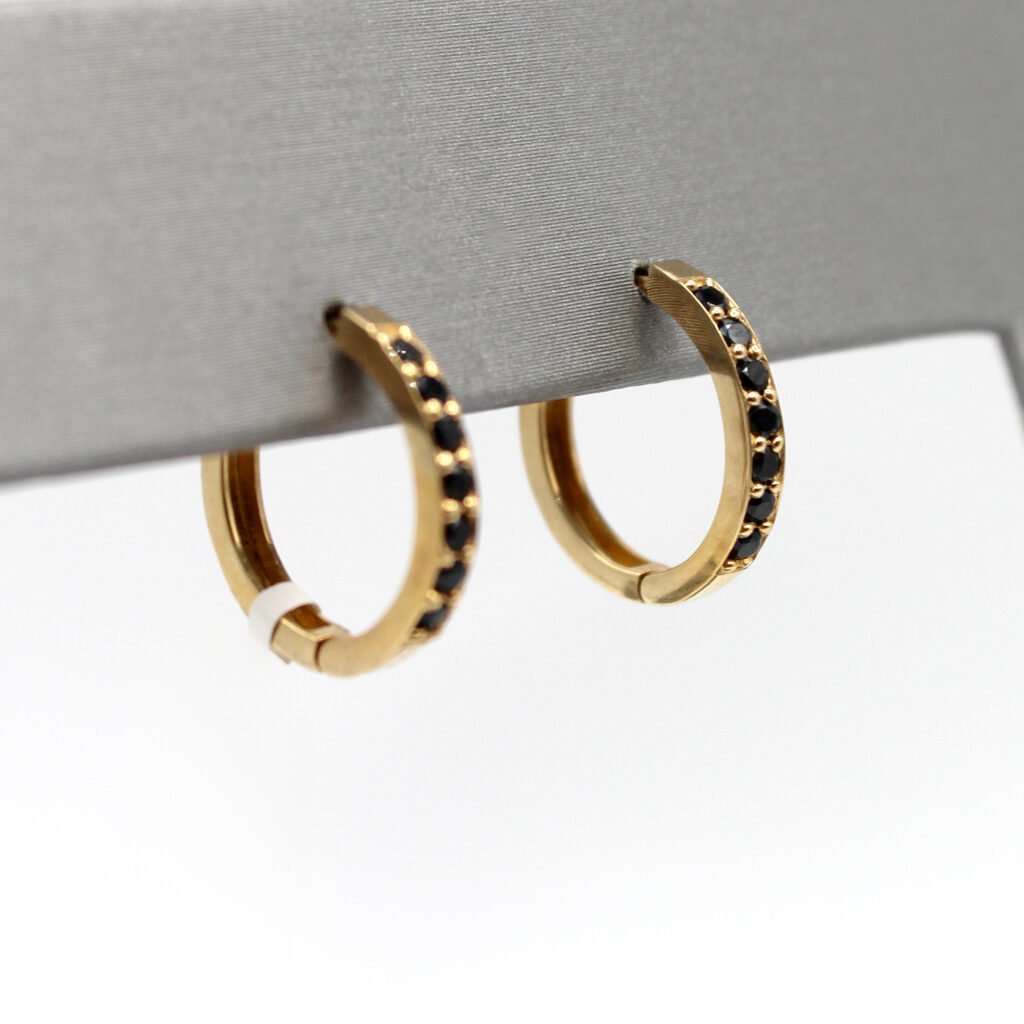 Black Oval Stone Dangle Earrings – 10KT Gold