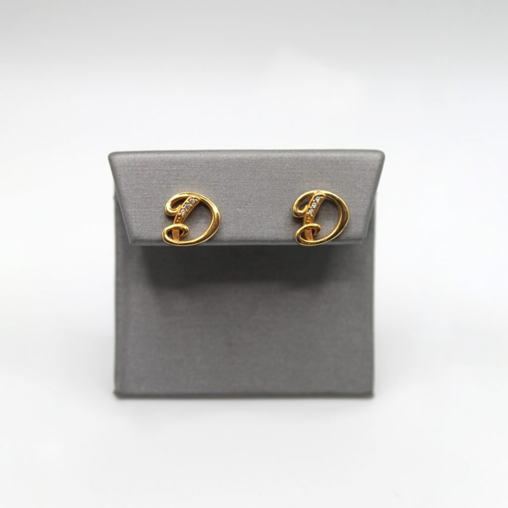 Cursive Initial ‘D’ Stud Earrings with Zirconia – 10KT Gold